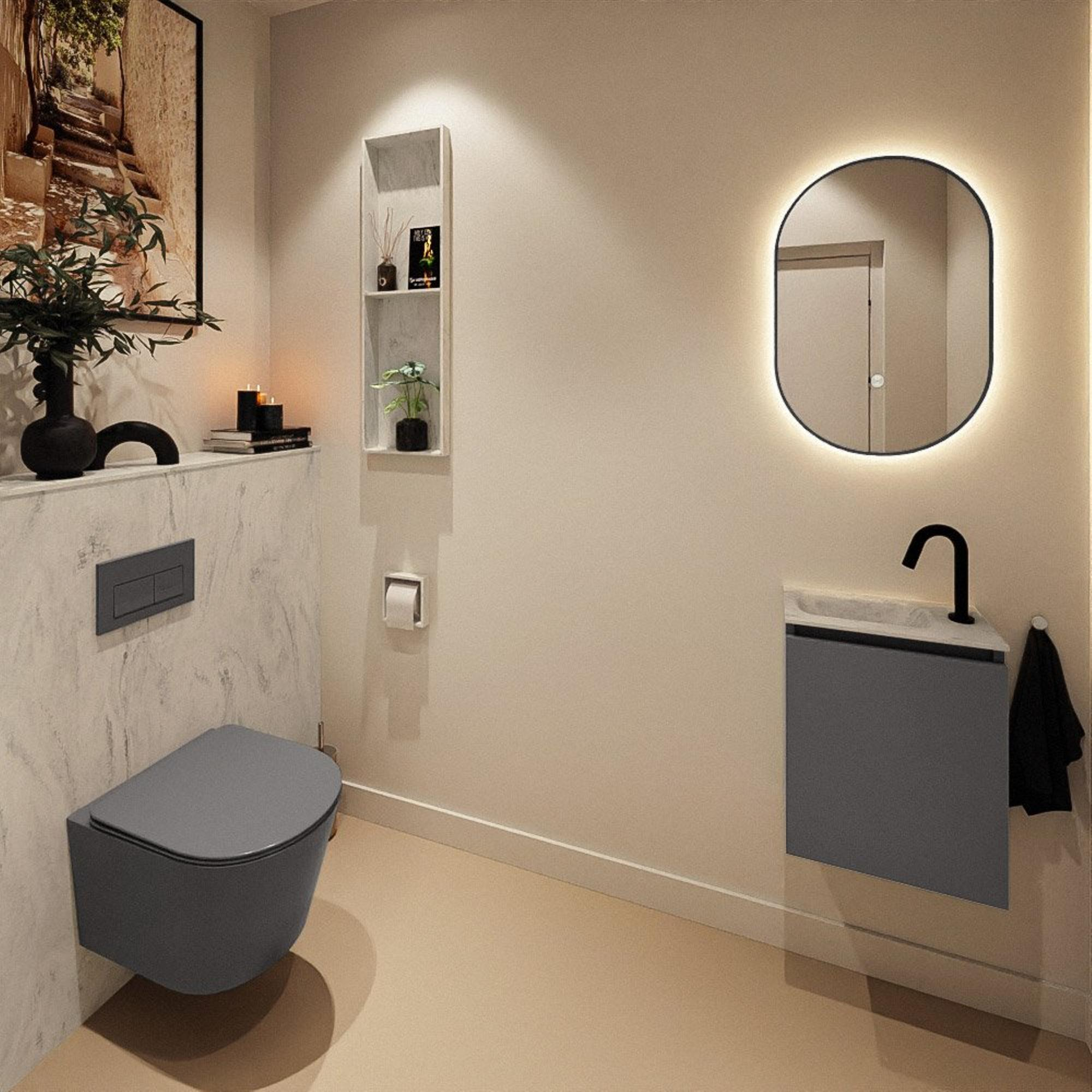 MONDIAZ TURE-DLUX Meuble WC 40 cm Dark Grey. EDEN lavabo Opalo position à gauche. Avec 1 trou de robinet.