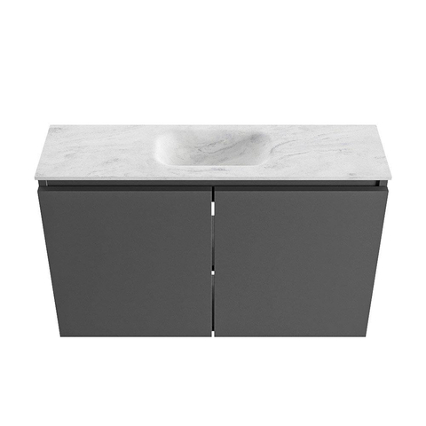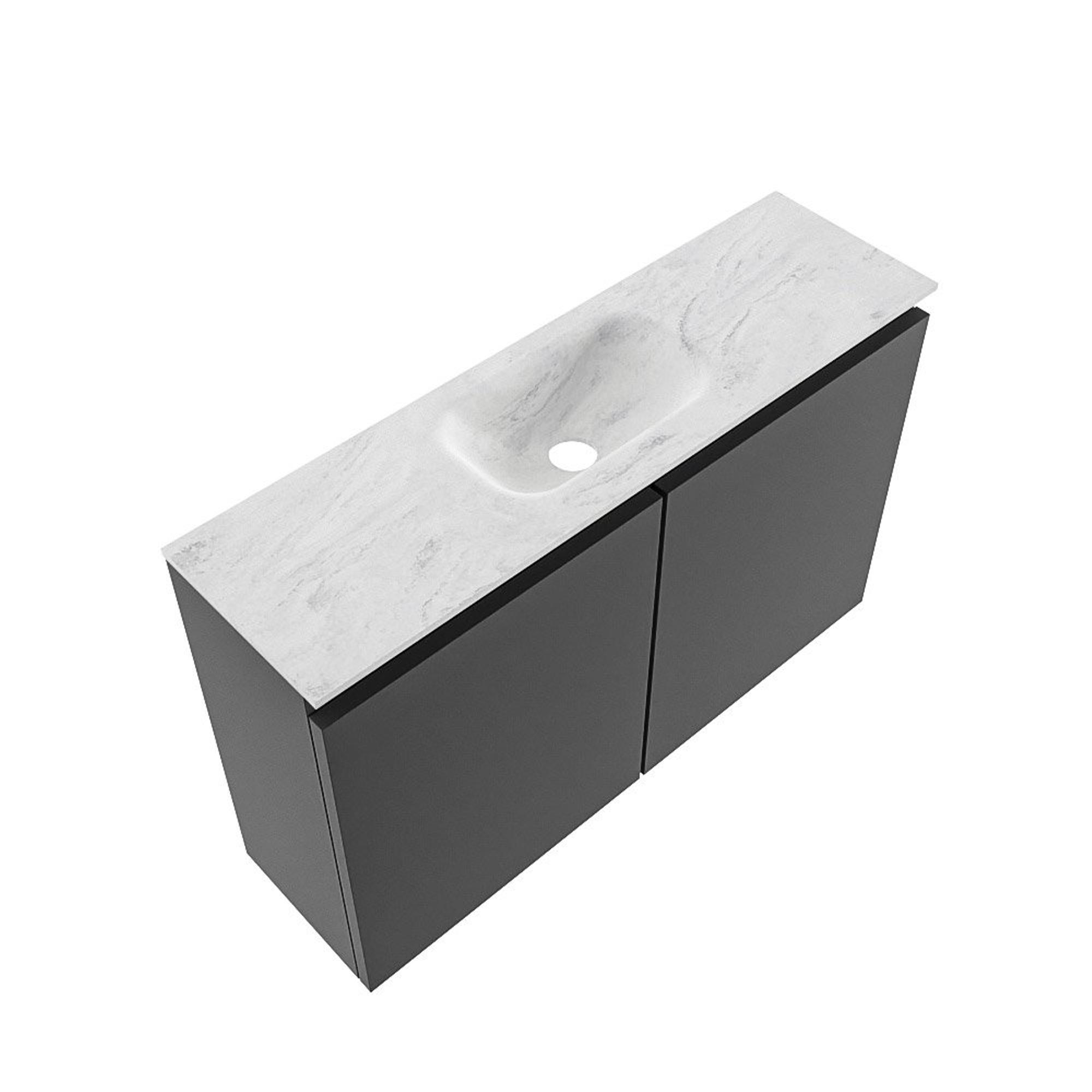 MONDIAZ TURE-DLUX Meuble WC 80 cm Dark Grey. EDEN lavabo Opalo position milieu. Avec 1 trou de robinet.