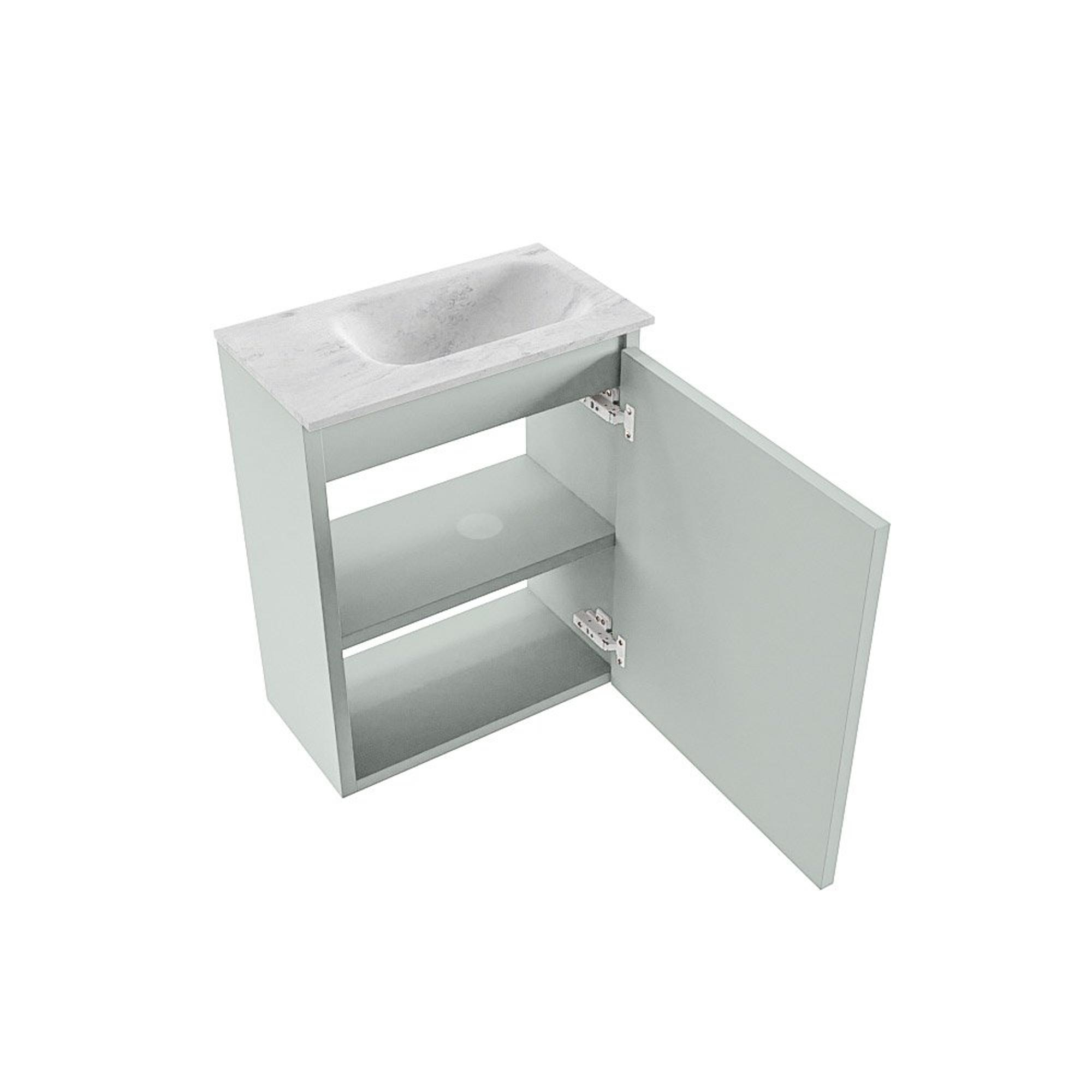 MONDIAZ TURE-DLUX Meuble de toilettes 40 cm Greey. Lavabo EDEN Opalo position droite. Sans trou de robinet.