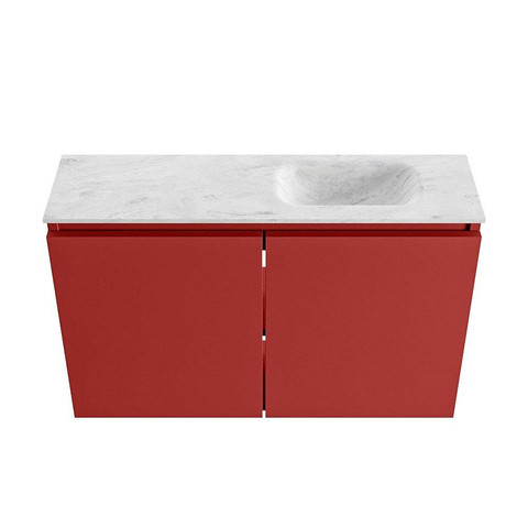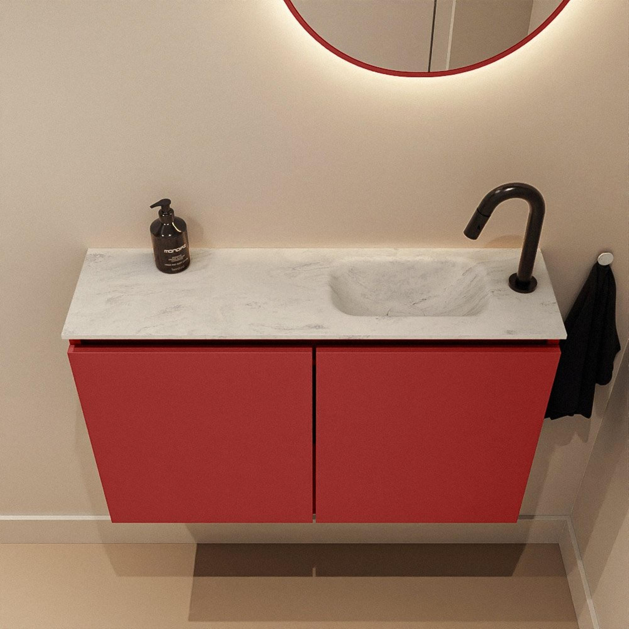 MONDIAZ TURE-DLUX meuble de toilette 80 cm Fire. EDEN lavabo Opalo position droite. Avec 1 trou de robinet.