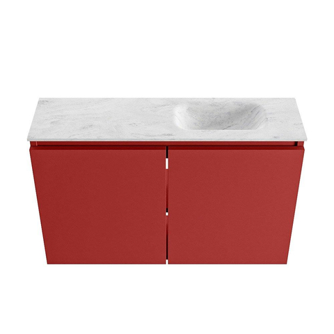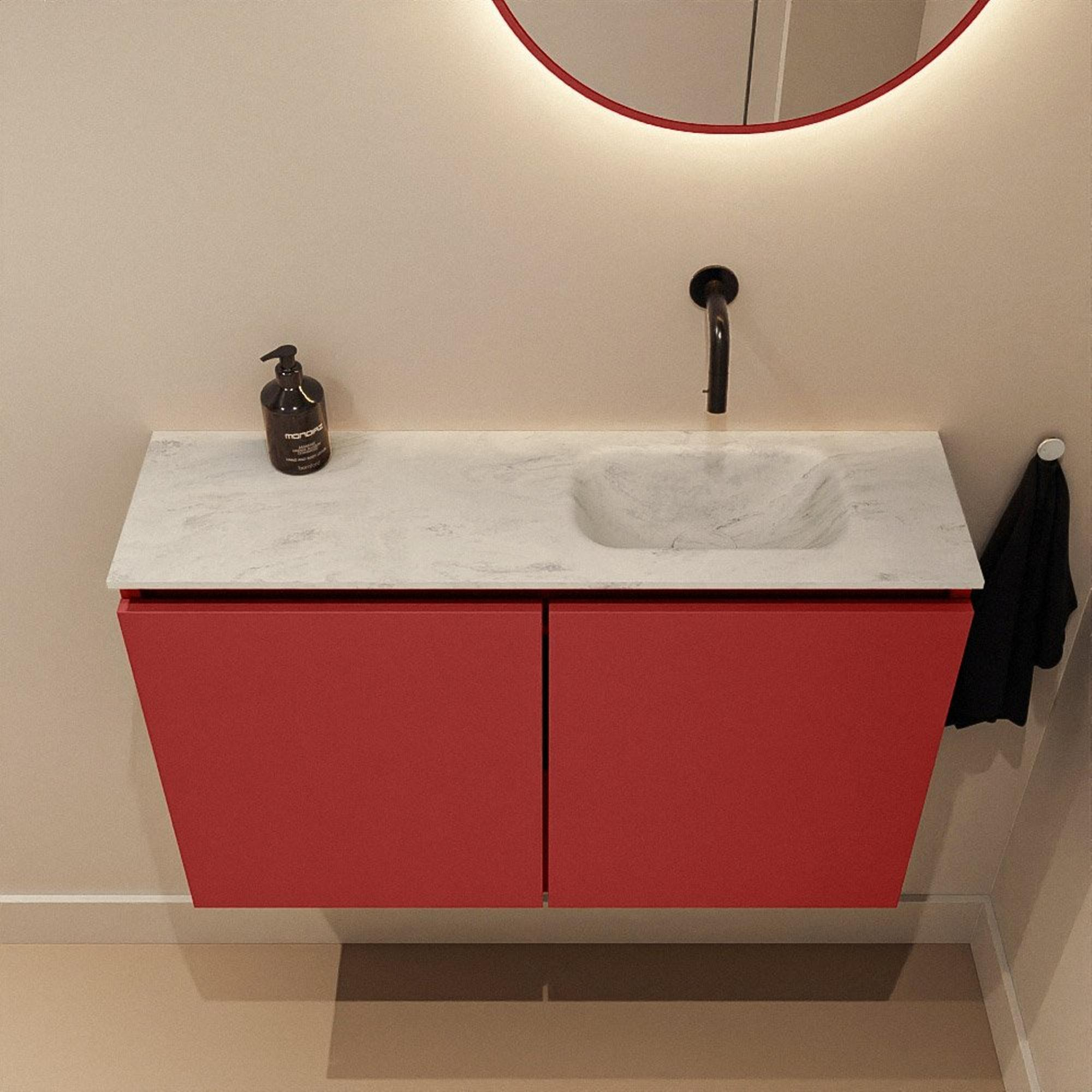 MONDIAZ TURE-DLUX meuble de toilette 80cm Fire. EDEN lavabo Opalo position droite. Sans trou de robinet.