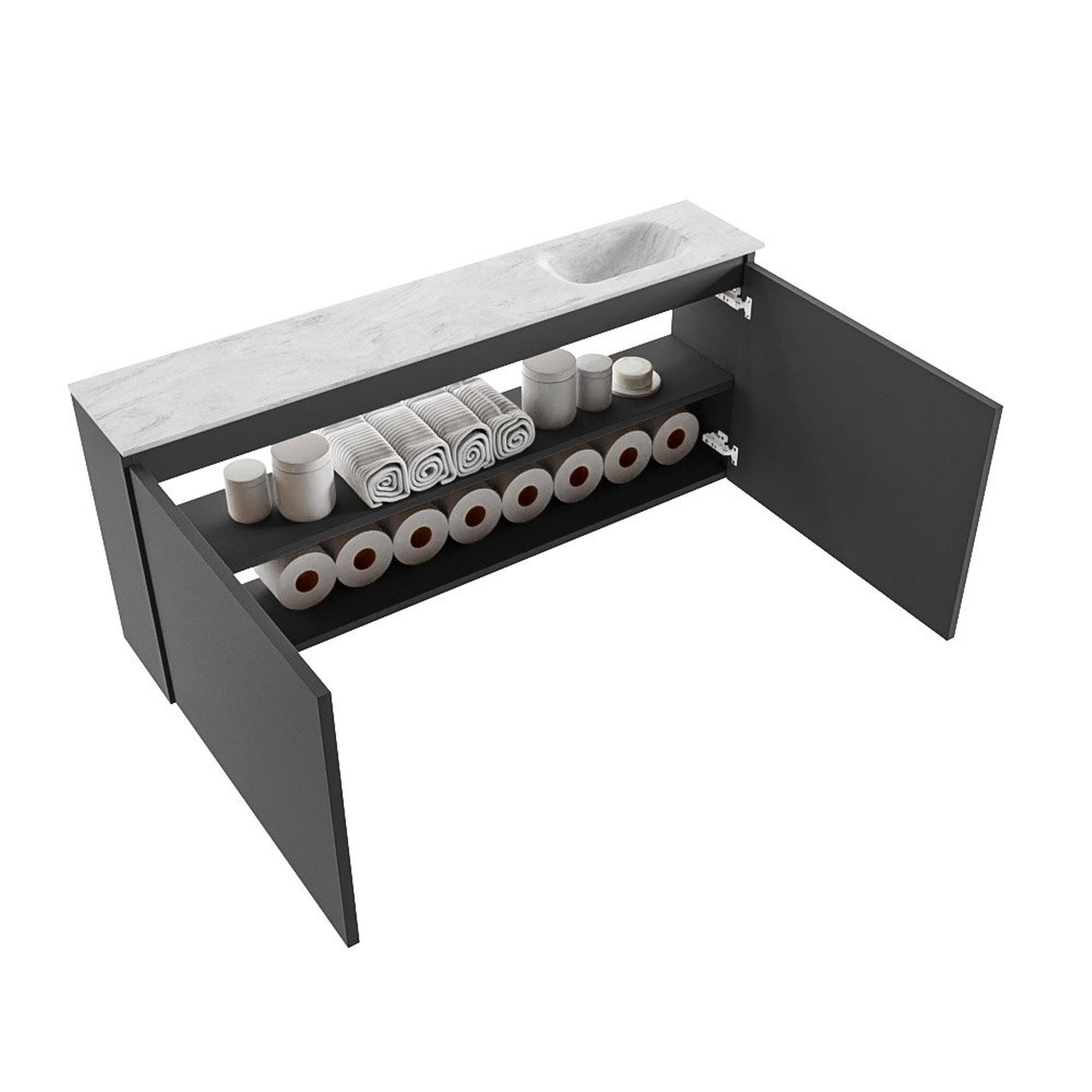 MONDIAZ TURE-DLUX meuble de toilettes 120cm Dark Grey. EDEN lavabo Opalo position droite. Avec 1 trou de robinet.
