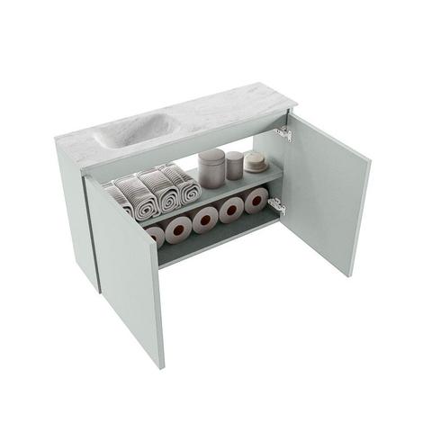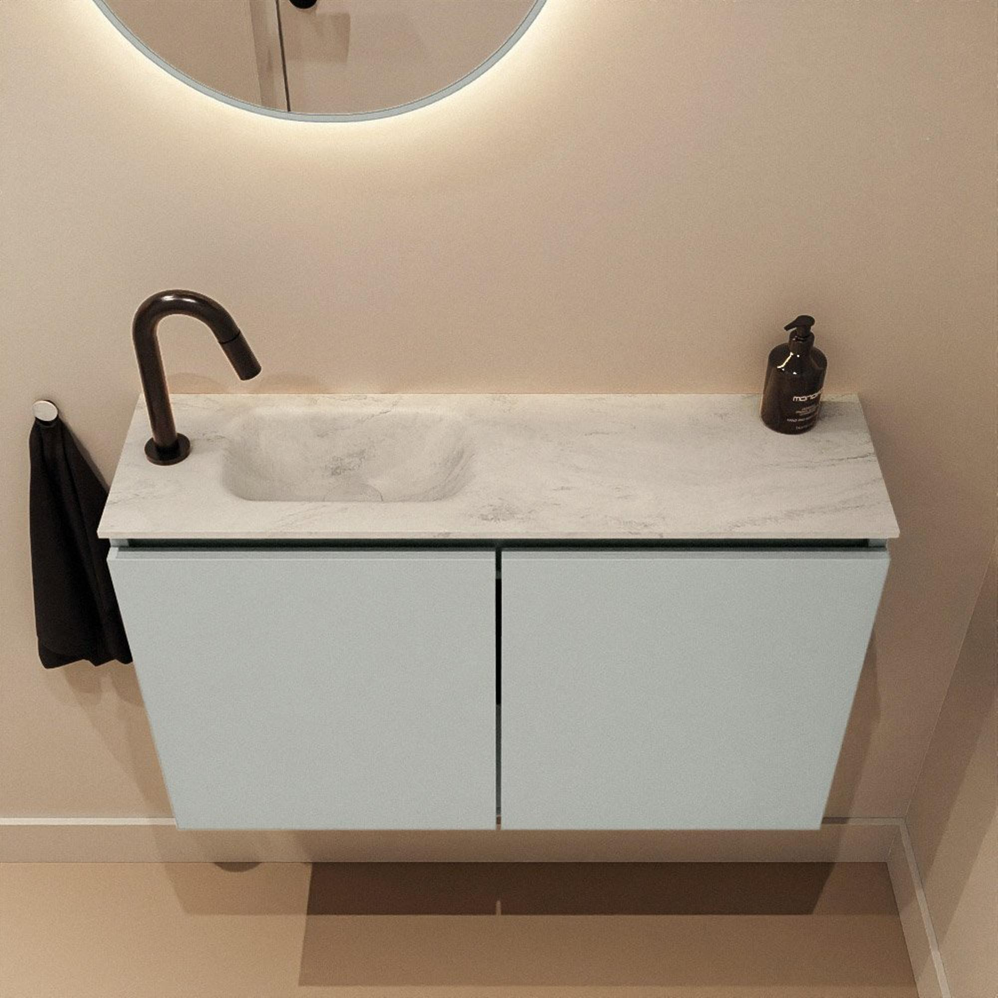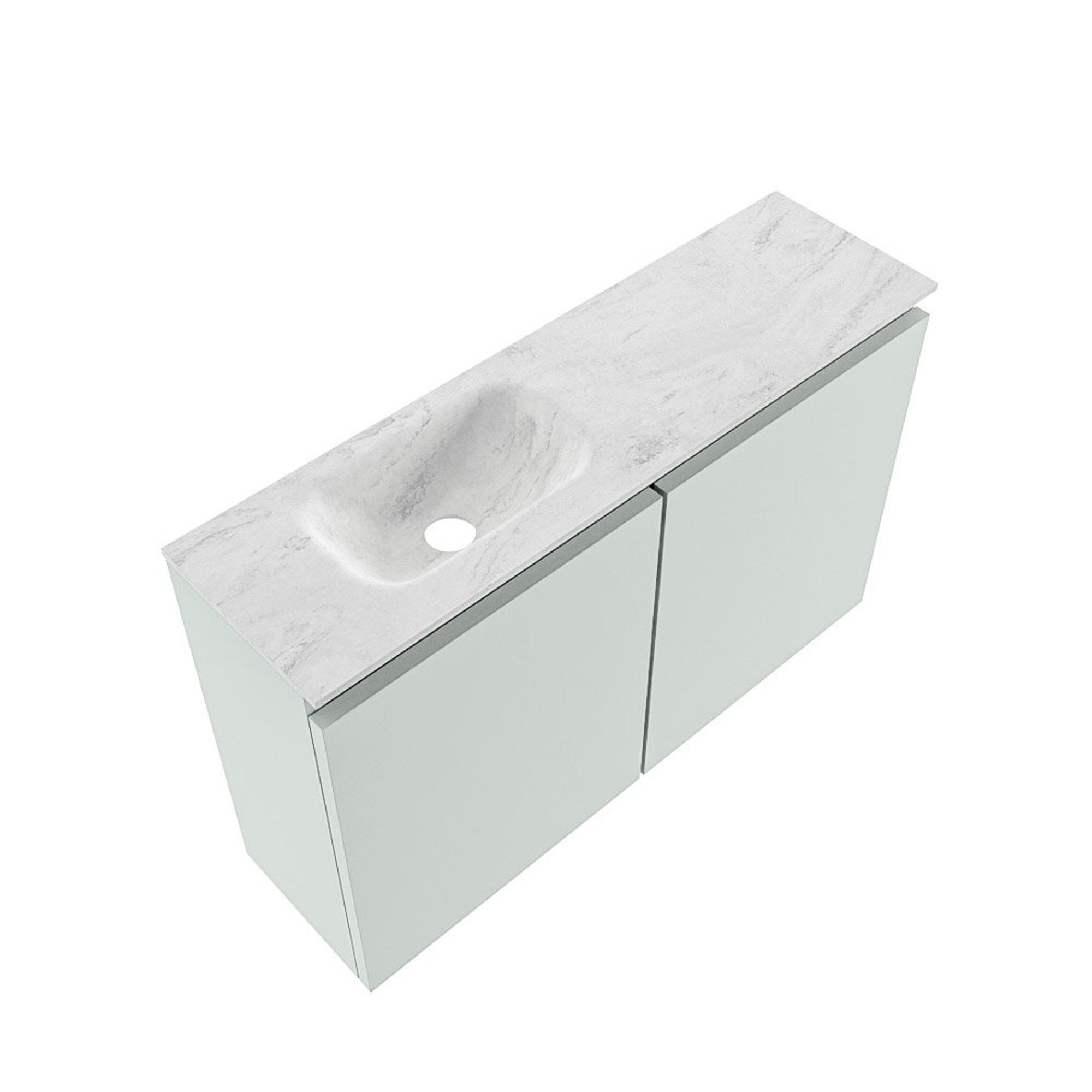 MONDIAZ TURE-DLUX Meuble WC 80 cm Greey. EDEN lavabo Opalo position gauche. Avec 1 trou de robinet.