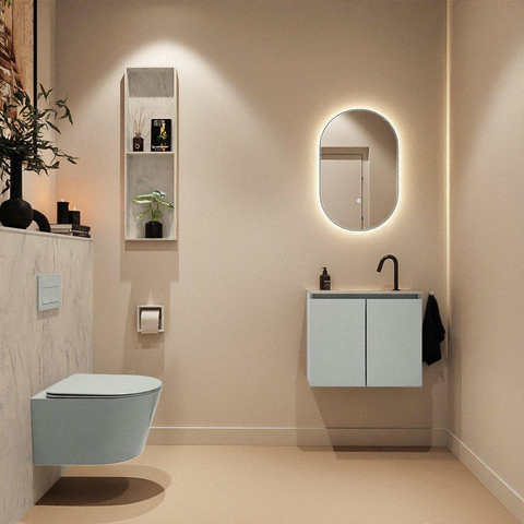 MONDIAZ TURE-DLUX meuble WC 60 cm Greey. EDEN lavabo Opalo position milieu. Avec 1 trou de robinet.