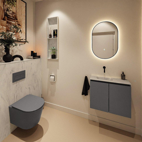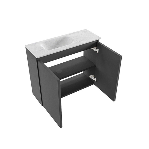 MONDIAZ TURE-DLUX Meuble de toilettes 60 cm Dark Grey. Lavabo EDEN Opalo position gauche. Sans trou de robinet.