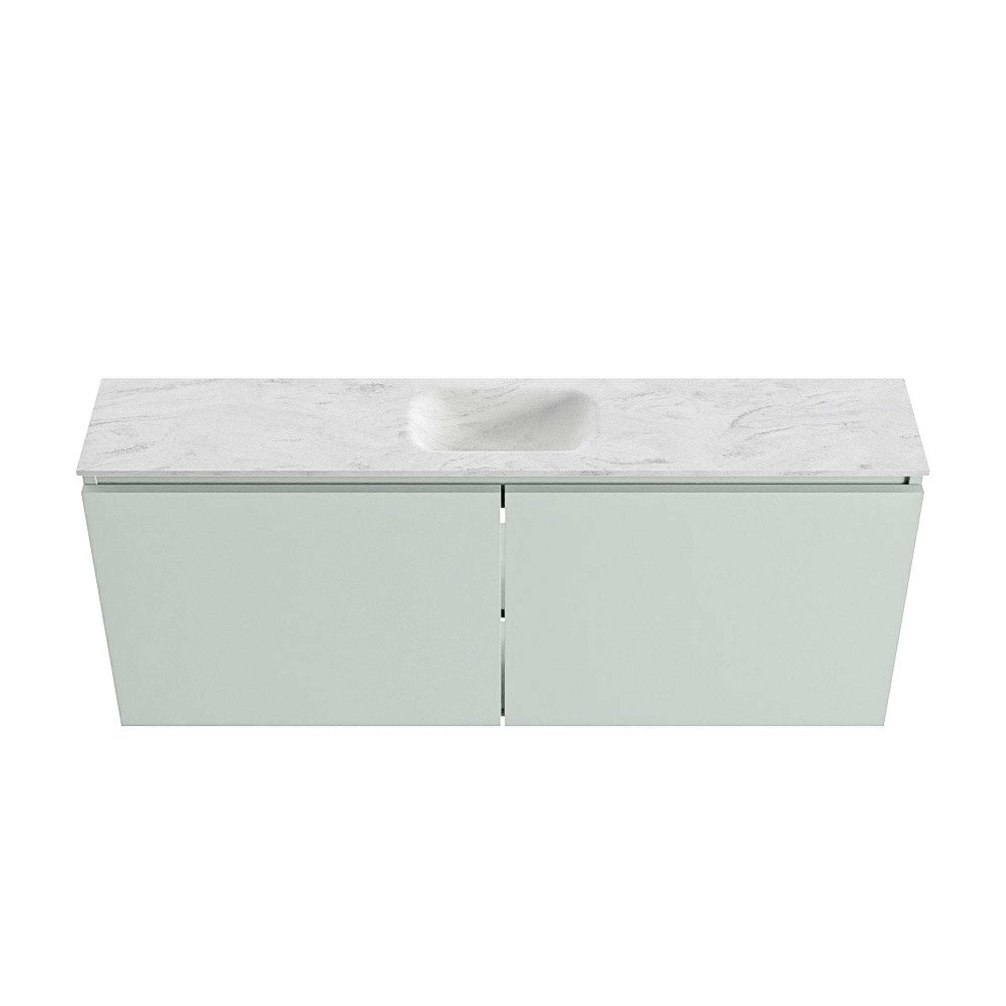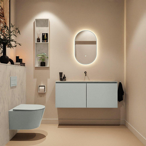 MONDIAZ TURE-DLUX Meuble de toilettes 120 cm Greey. EDEN vasque Opalo position milieu. Sans trou de robinet.
