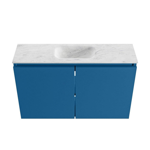 MONDIAZ TURE-DLUX meuble WC 80 cm Jeans. Lavabo EDEN Opalo position milieu. Avec 1 trou de robinet.
