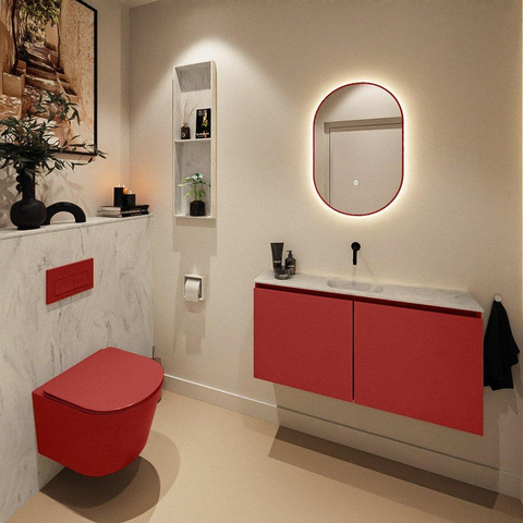 MONDIAZ TURE-DLUX Meuble WC 100 cm Fire. Lavabo EDEN Opalo position milieu. Sans trou de robinet.