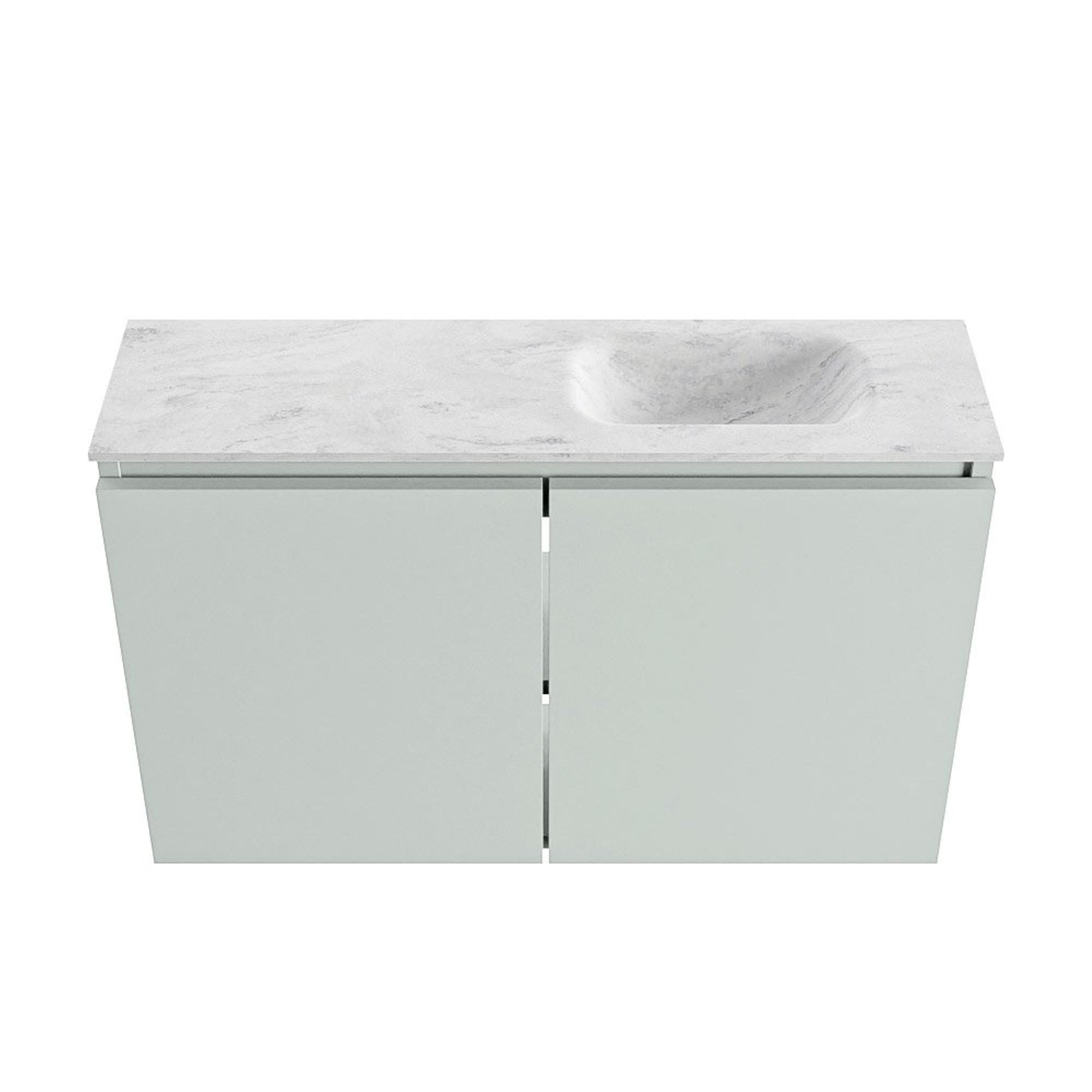 MONDIAZ TURE-DLUX Meuble de toilettes 80 cm Greey. Lavabo EDEN Opalo position droite. Avec 1 trou de robinet.