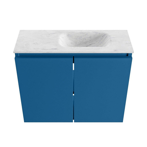 La couleur bleu jean apporte immédiatement du caractère et une allure moderne à vos toilettes ou à votre petite salle de bains. Le plan de lavabo en solid surface gris de la série Eden avec forme Opalo y ajoute une touche haut de gamme et minimaliste. La combinaison du bleu et du gris offre un rendu apaisant, mais un peu différent du blanc standard, donnant ainsi à votre espace une mise à niveau élégante. Grâce à la façade sans poignées, l’apparence reste épurée et calme, et le meuble s’harmonise facilement avec d’autres produits sanitaires modernes et les carrelages.