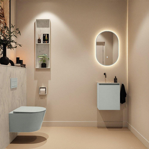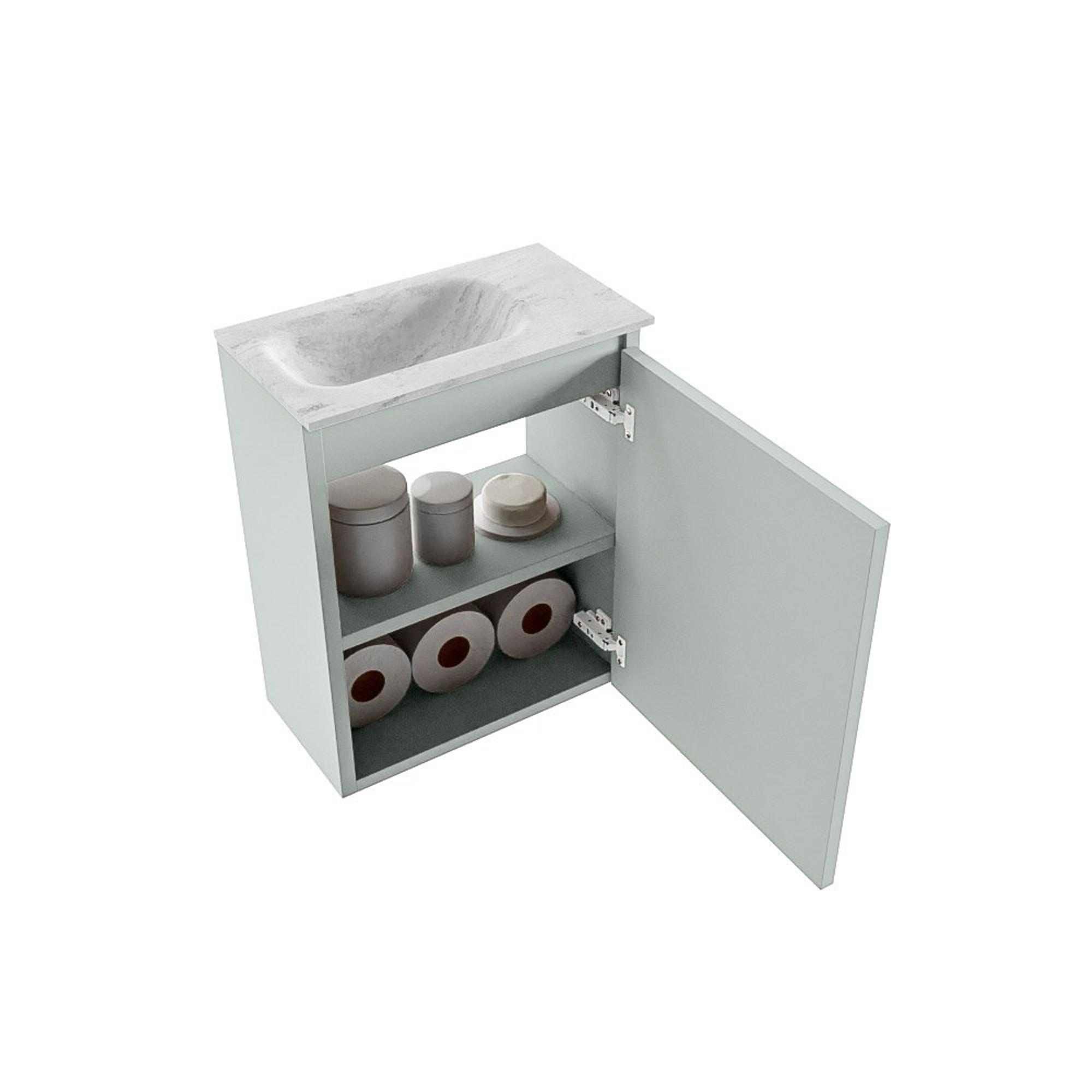 MONDIAZ TURE-DLUX Meuble de toilettes 40 cm Greey. Lavabo EDEN Opalo position gauche. Sans trou de robinet.