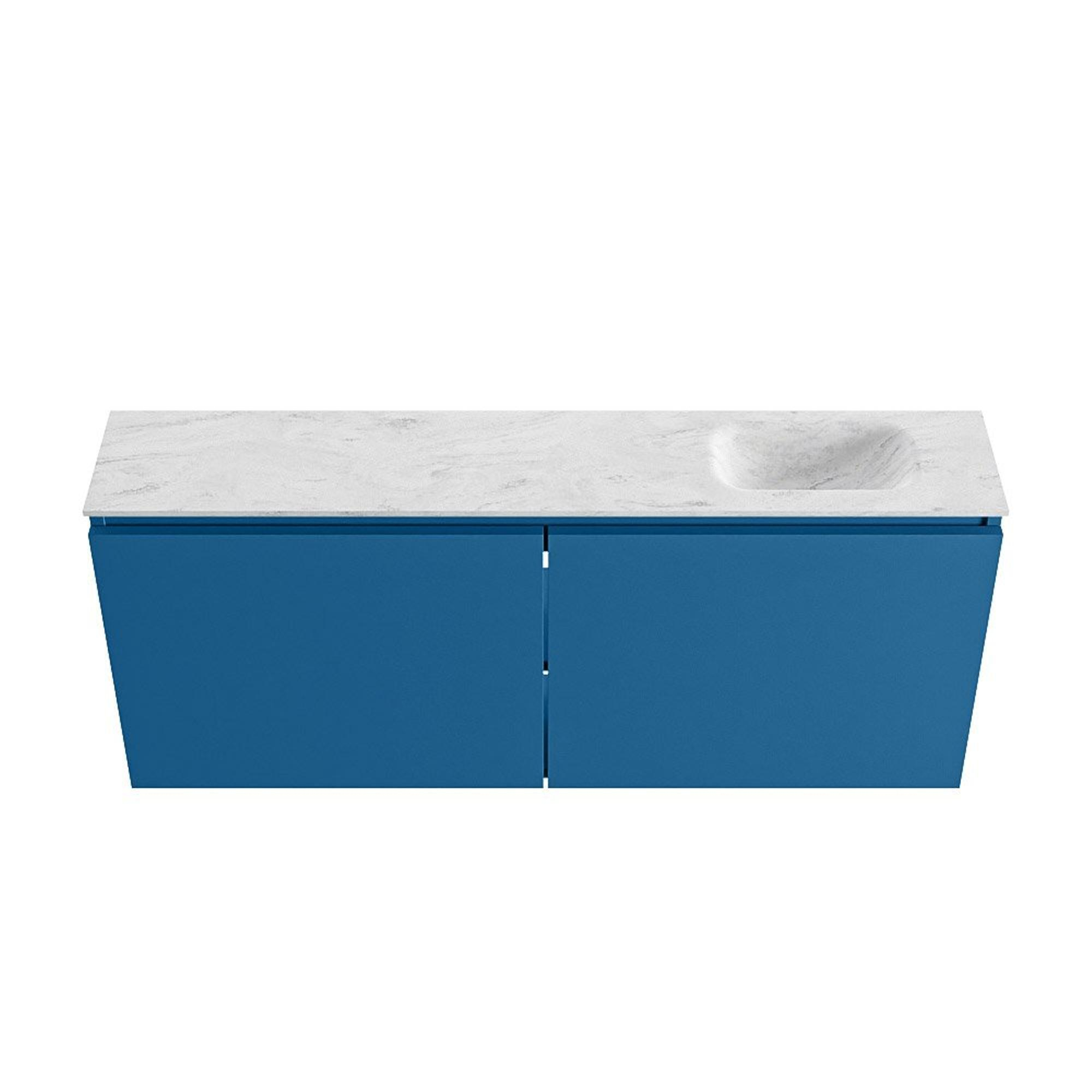 MONDIAZ TURE-DLUX Meuble WC 120 cm Jeans. Lavabo EDEN Opalo position droite. Sans trou de robinet.