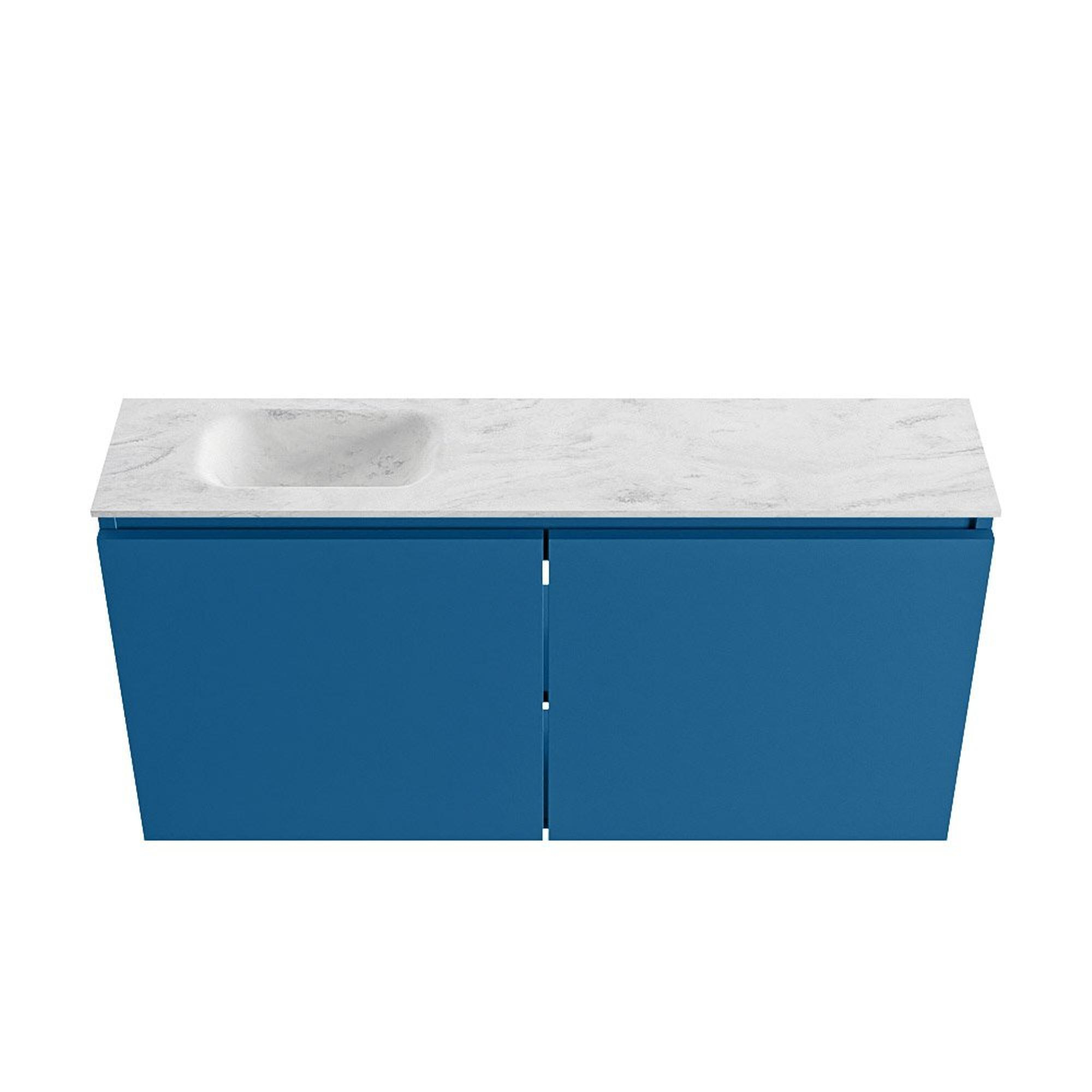MONDIAZ TURE-DLUX Meuble WC 100 cm Jeans. EDEN lavabo Opalo position gauche. Avec 1 trou de robinet.