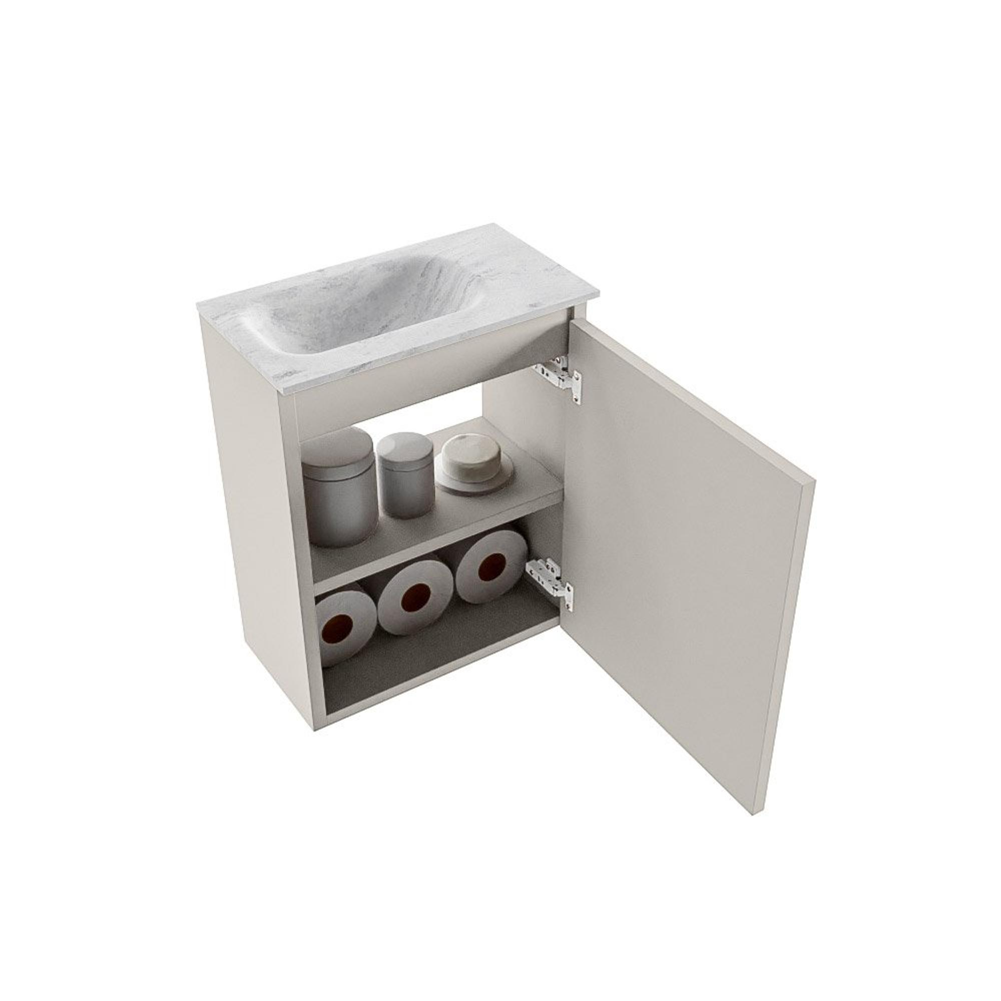 MONDIAZ TURE-DLUX Meuble de toilette 40 cm Linen. Lavabo EDEN Opalo position gauche. Avec 1 trou de robinet.