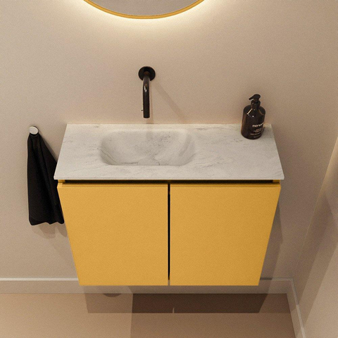MONDIAZ TURE-DLUX meuble de toilettes 60 cm Ocher. Lavabo EDEN Opalo position gauche. Sans trou de robinet.