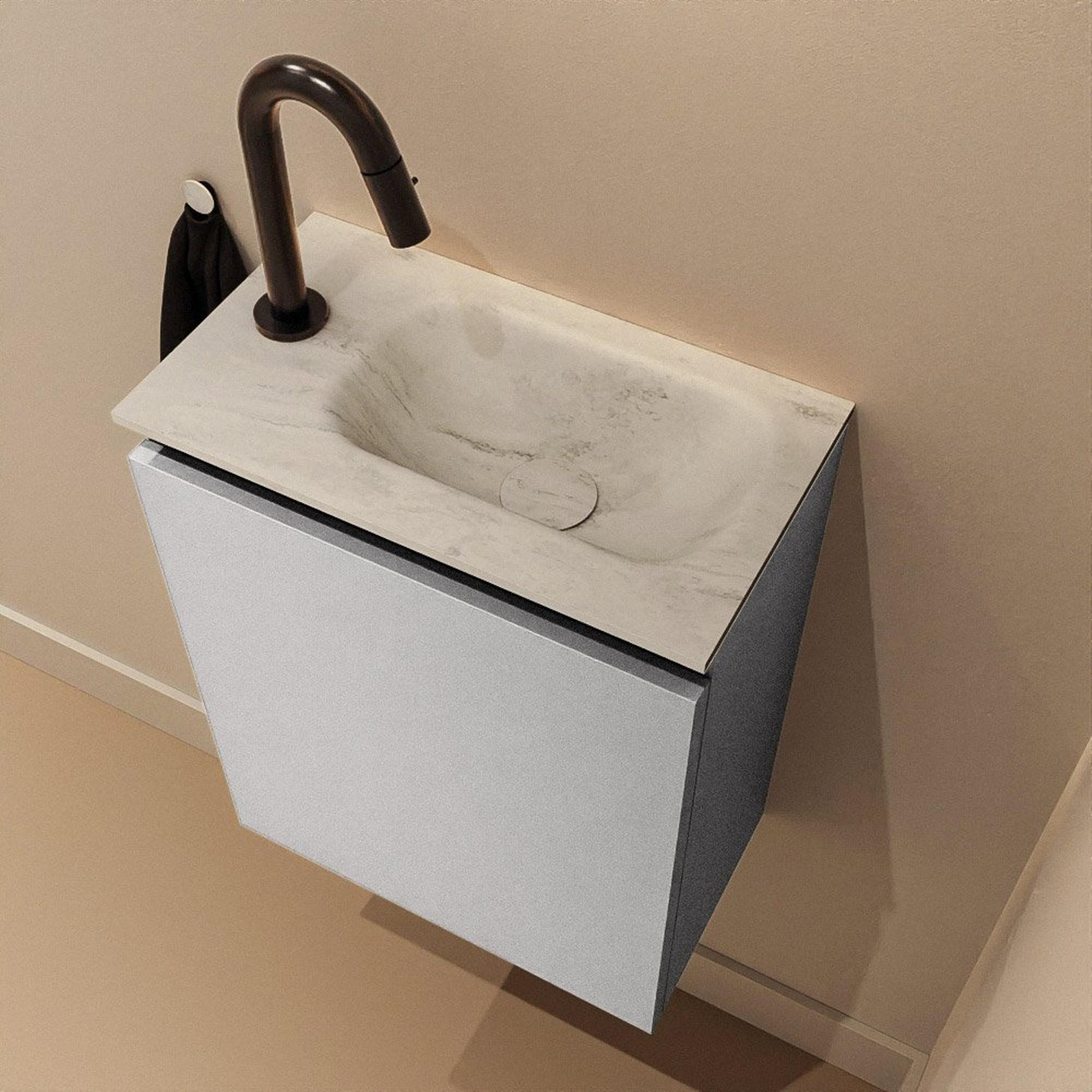 MONDIAZ TURE-DLUX Meuble de toilettes 40cm Plata. EDEN lavabo Opalo position à droite. Avec 1 trou de robinet.