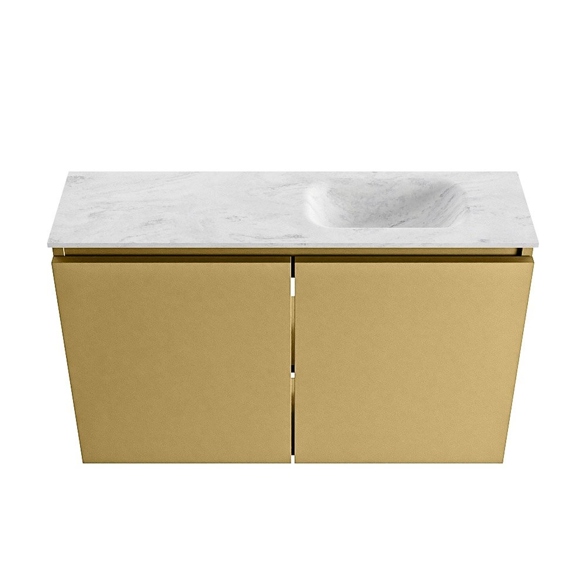 MONDIAZ TURE-DLUX Meuble WC 80 cm Oro. Lavabo EDEN Opalo position droite. Sans trou de robinet.