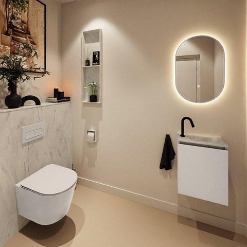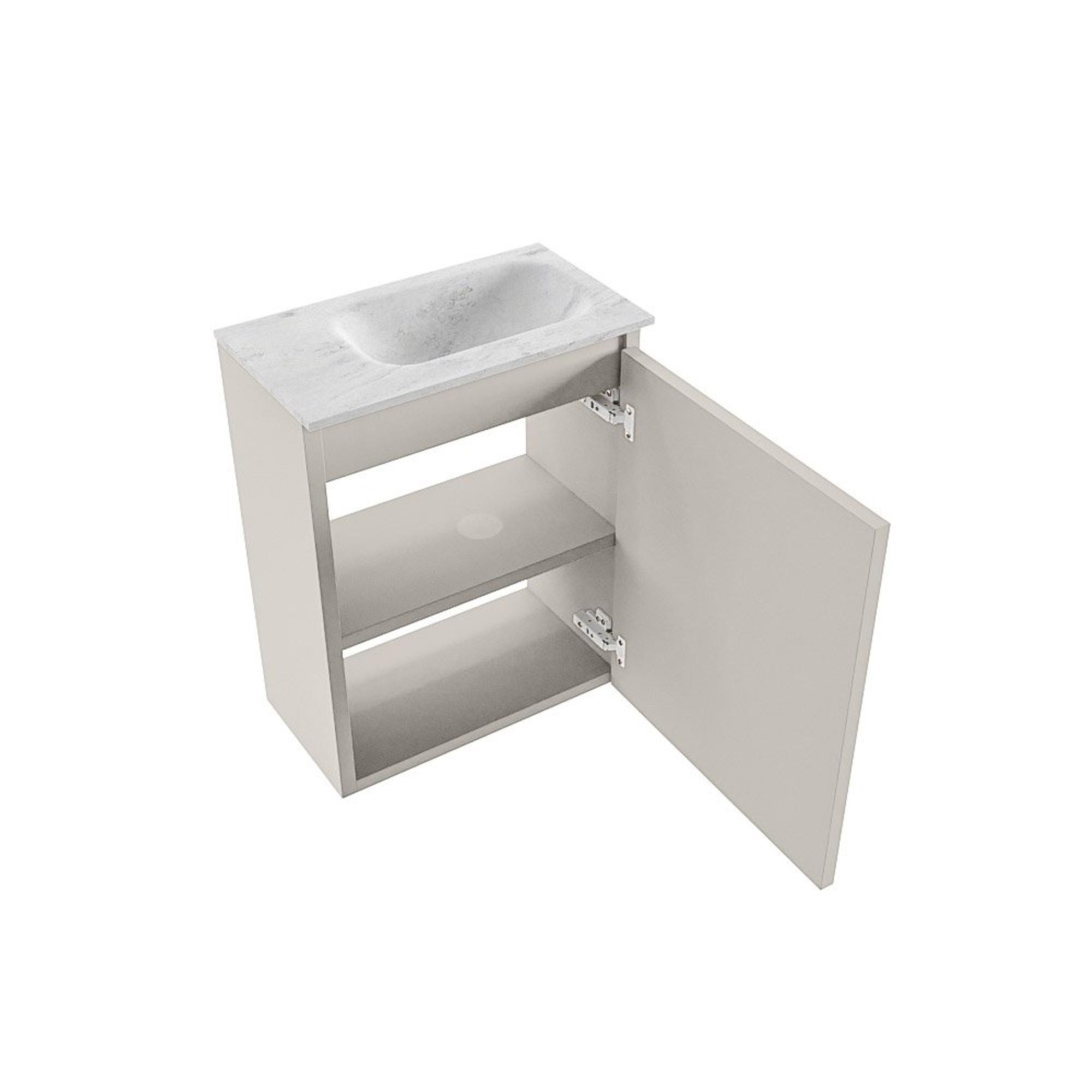 MONDIAZ TURE-DLUX meuble toilettes 40cm Linen. EDEN lavabo Opalo position droite. Avec 1 trou de robinet.