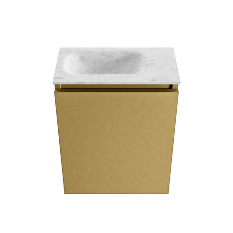 - Meuble luxueux couleur or (Oro) avec vasque grise Eden en Opalo pour une apparence moderne et chic.
