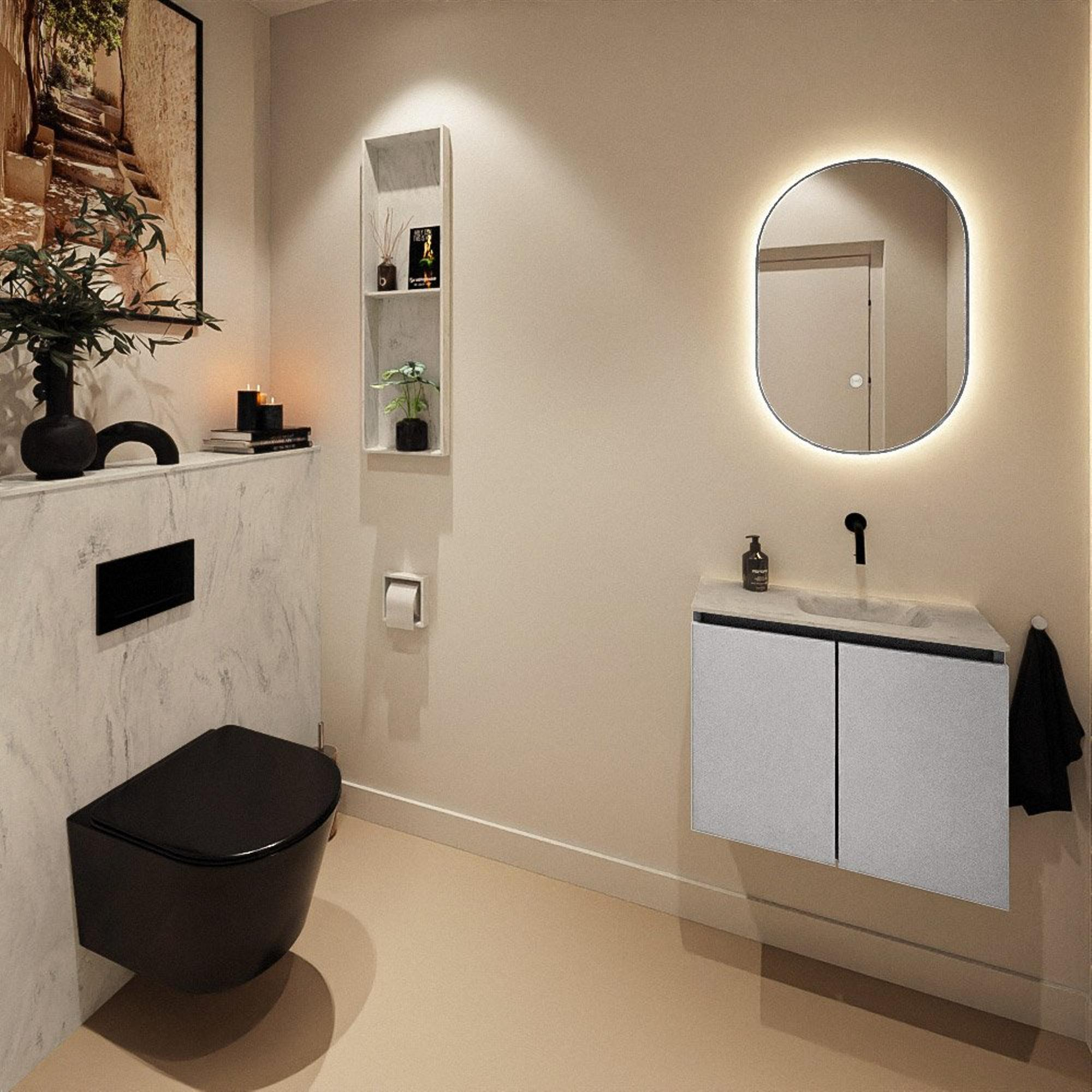 Avec une largeur de 60 cm et une profondeur de seulement 23 cm, ce meuble est conçu pour les situations où chaque centimètre compte. La forme peu profonde permet de se déplacer librement, même dans un espace WC étroit ou un long couloir avec toilettes. Le lavabo offre néanmoins suffisamment d’espace pour se laver confortablement les mains, sans éclaboussures dans toutes les directions. Grâce à la position de la cuve à droite, vous pouvez placer intelligemment le meuble par rapport à la porte et au WC, ce qui apporte un confort supplémentaire à l’usage quotidien. Vous créez ainsi un point d’eau pratique qui donne une impression d’espace et ne gêne nulle part.