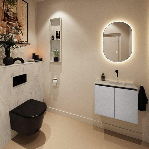 MONDIAZ TURE-DLUX Meuble WC 60cm Plata. Lavabo EDEN Opalo position droite. Sans trou de robinet.