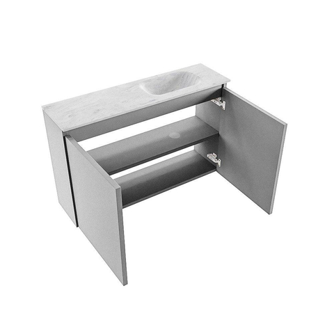 MONDIAZ TURE-DLUX Meuble WC 80 cm Plata. Lavabo EDEN Opalo position droite. Avec 1 trou de robinet.