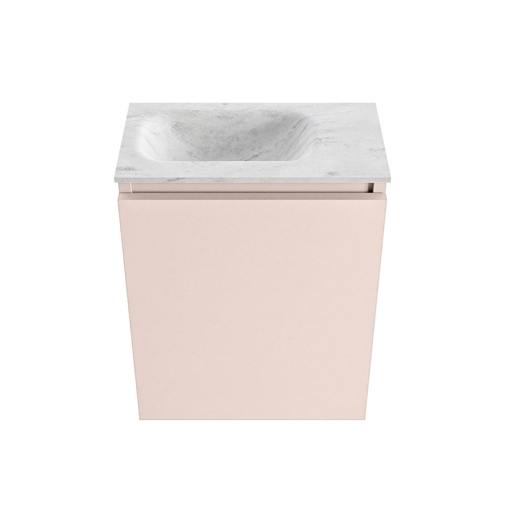 MONDIAZ TURE-DLUX Meuble de toilettes 40 cm Rosee. EDEN lavabo Opalo position gauche. Sans trou de robinet.