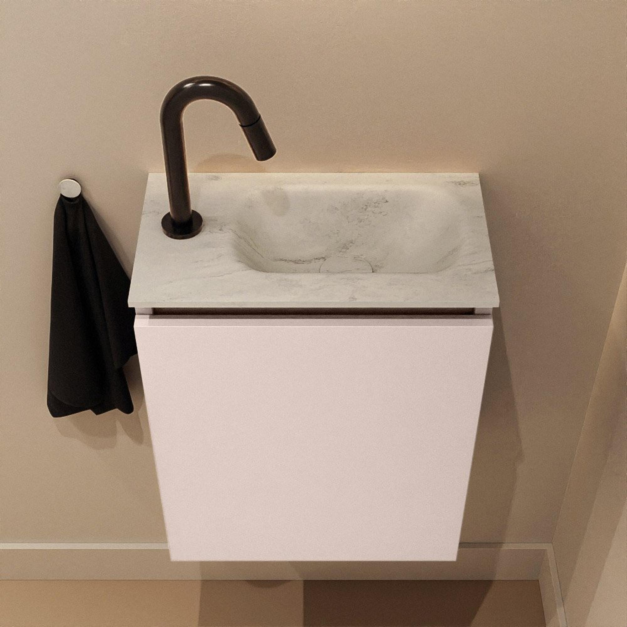 MONDIAZ TURE-DLUX Meuble de toilette 40 cm Rosee. EDEN vasque Opalo position droite. Avec 1 trou de robinet.