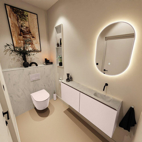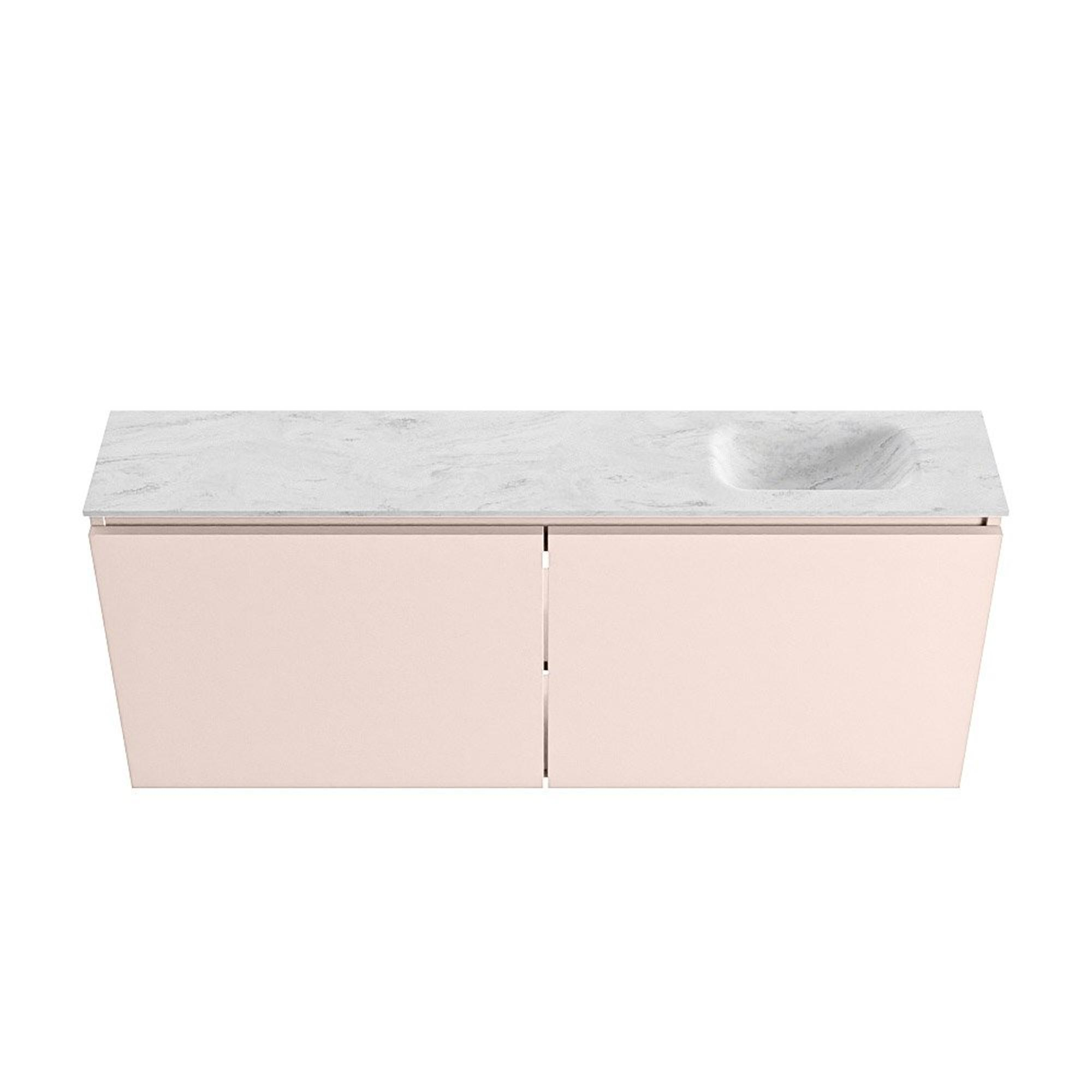 MONDIAZ TURE-DLUX Meuble WC 120 cm Rosee. Lavabo EDEN Opalo position droite. Sans trou de robinet.