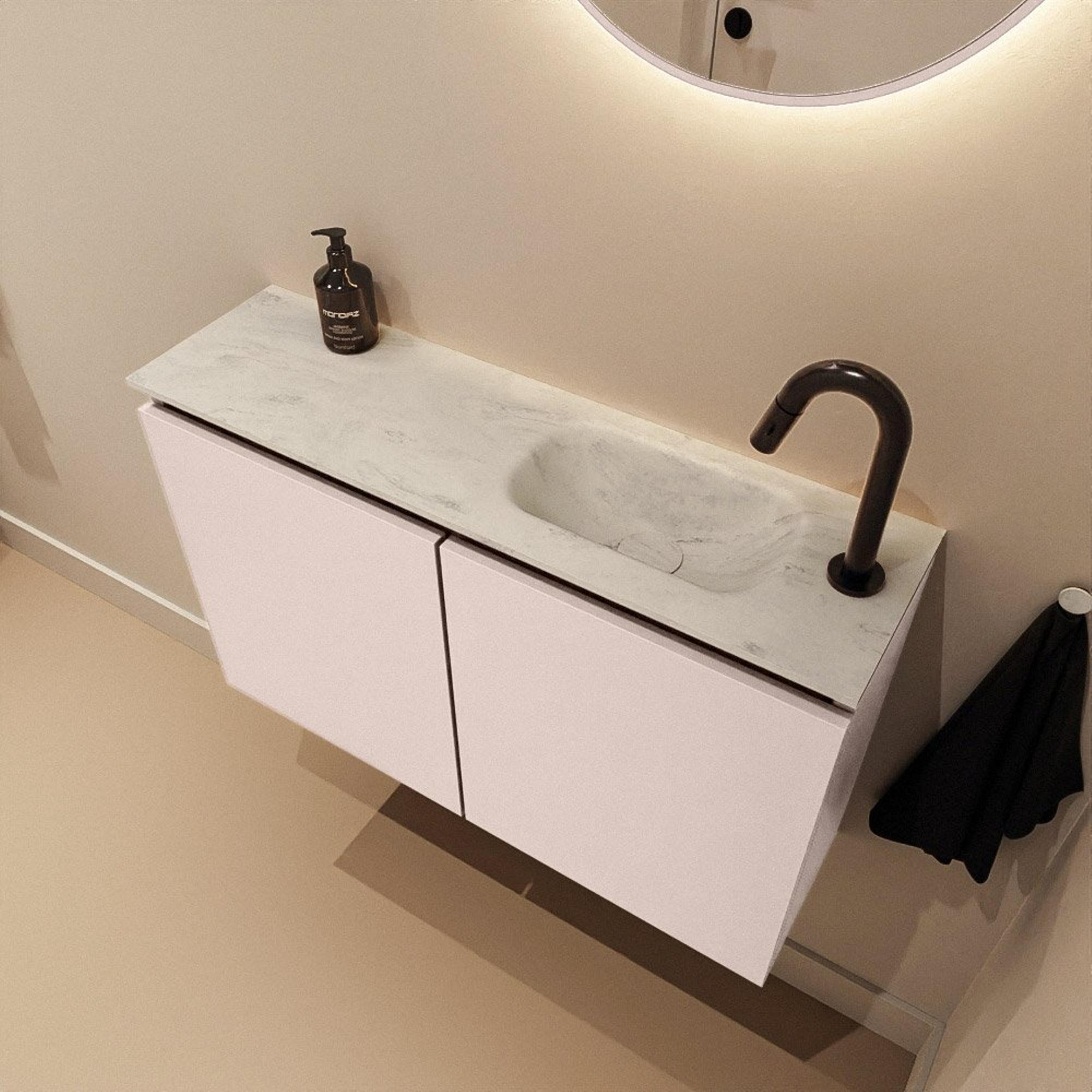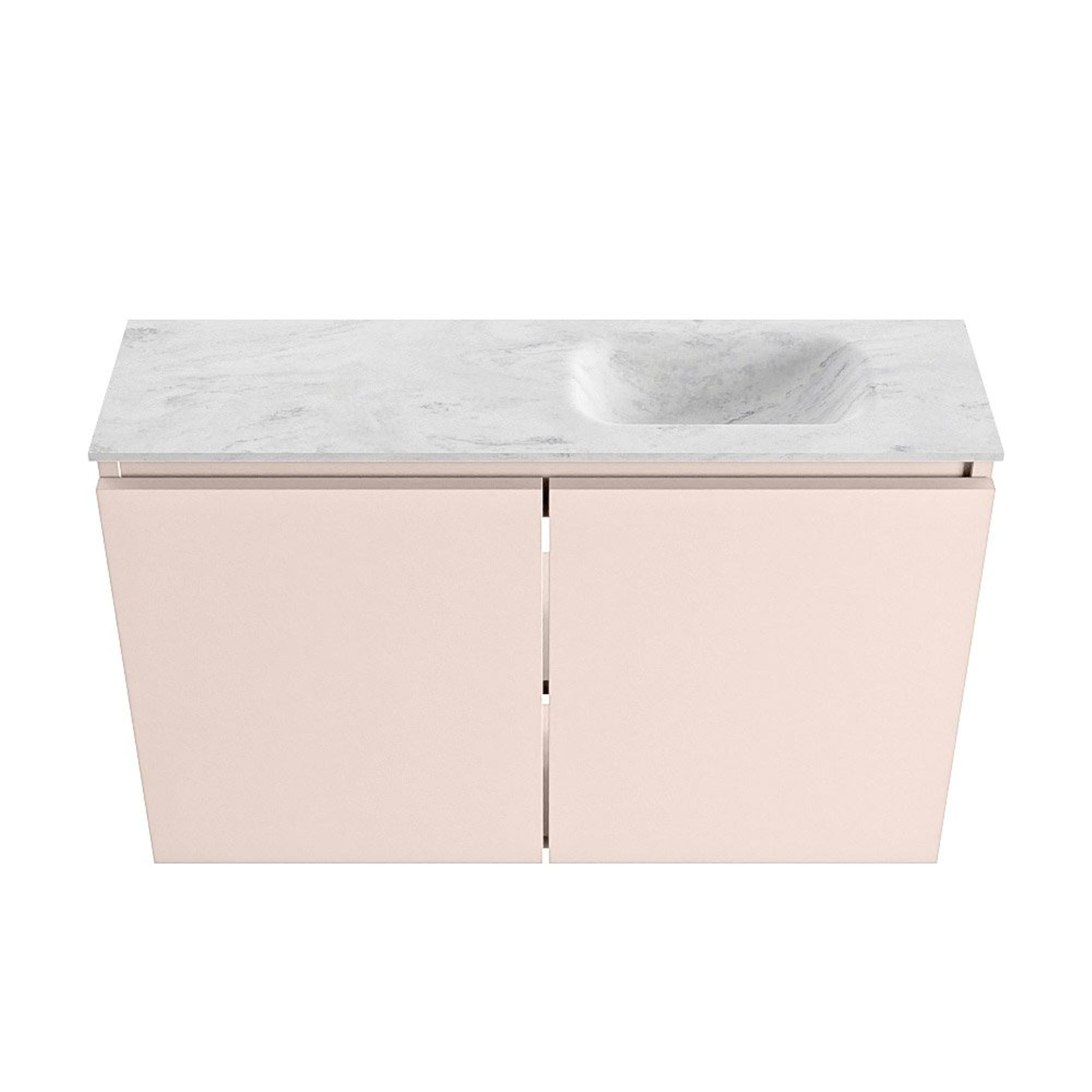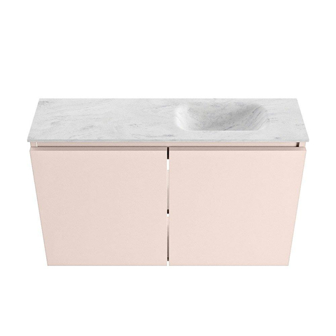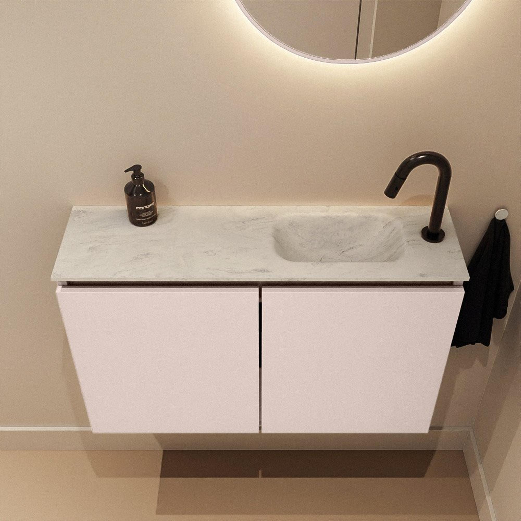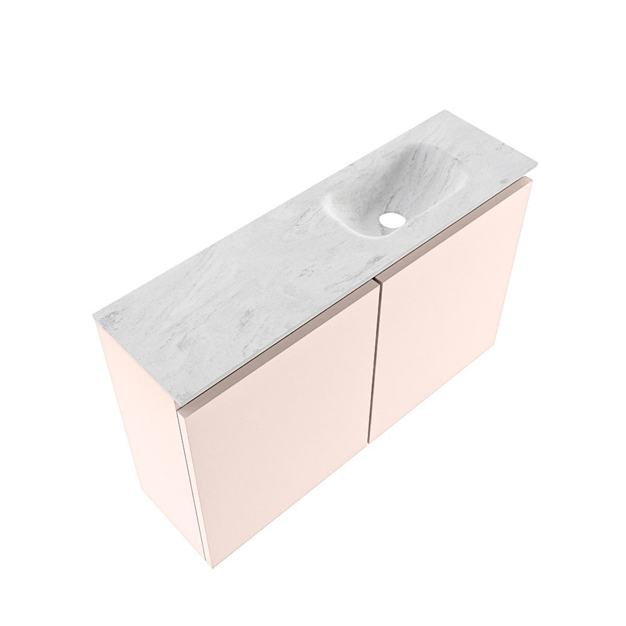MONDIAZ TURE-DLUX Meuble de toilettes 80cm Rosee. Lavabo EDEN Opalo position à droite. Avec 1 trou de robinet.