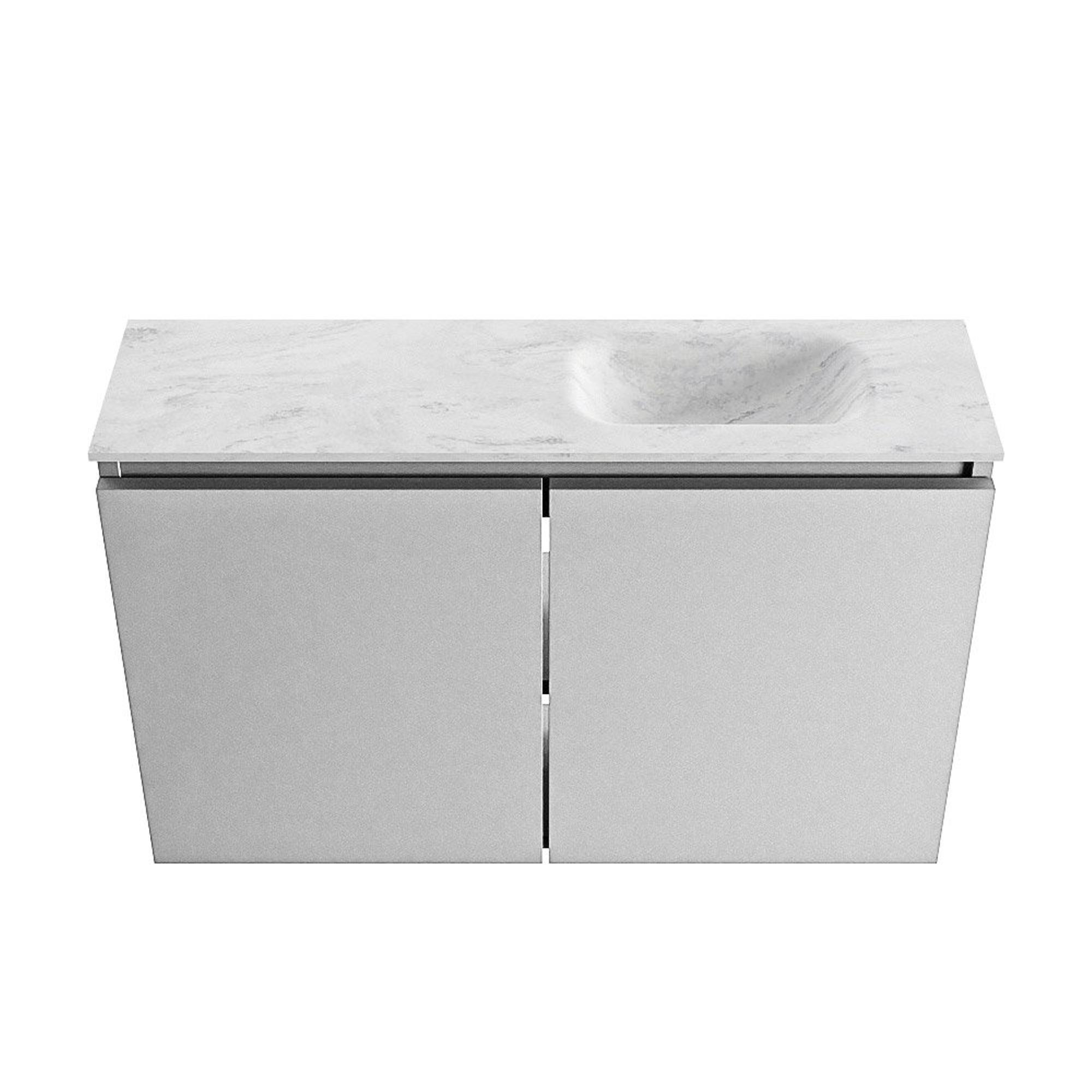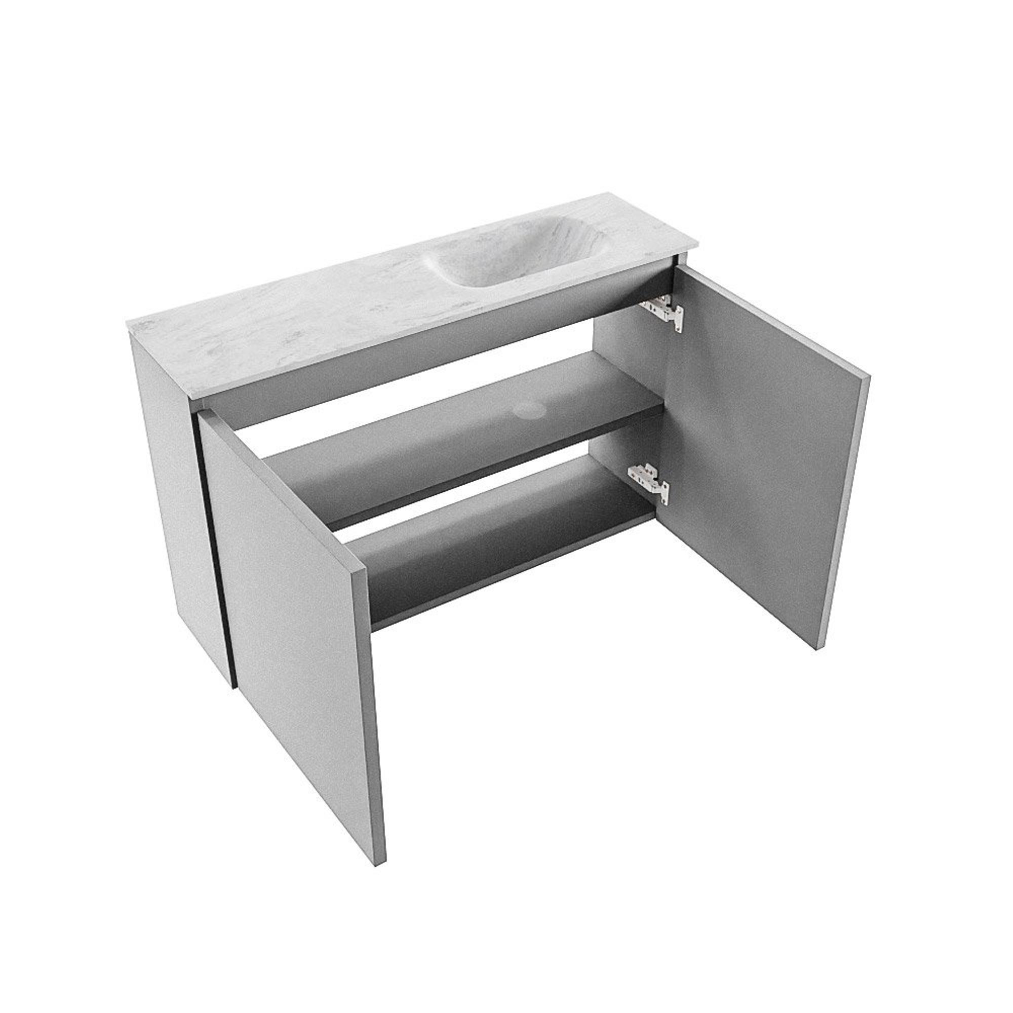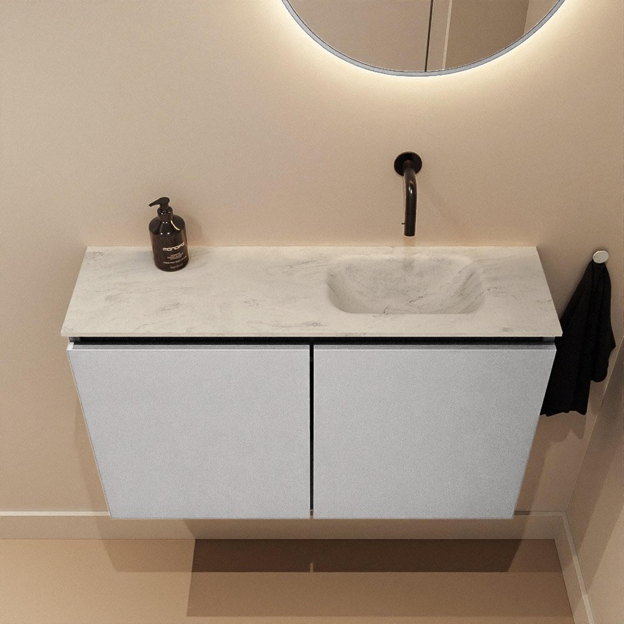 MONDIAZ TURE-DLUX meuble WC 80 cm Plata. EDEN lavabo Opalo position droite. Sans trou de robinet.
