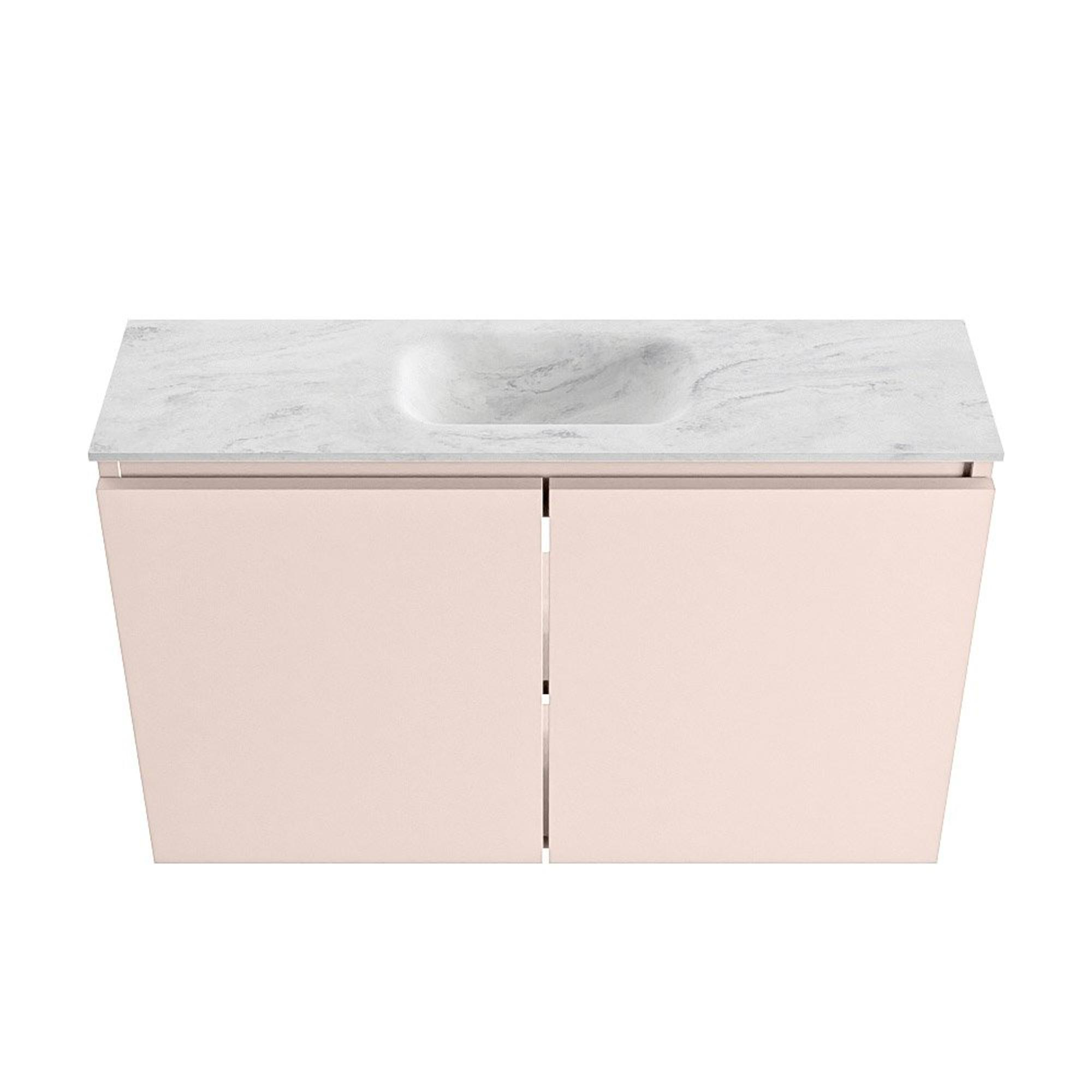 MONDIAZ TURE-DLUX Meuble de toilettes 80cm Rosee. Lavabo EDEN Opalo position centrale. Avec 1 trou de robinet.