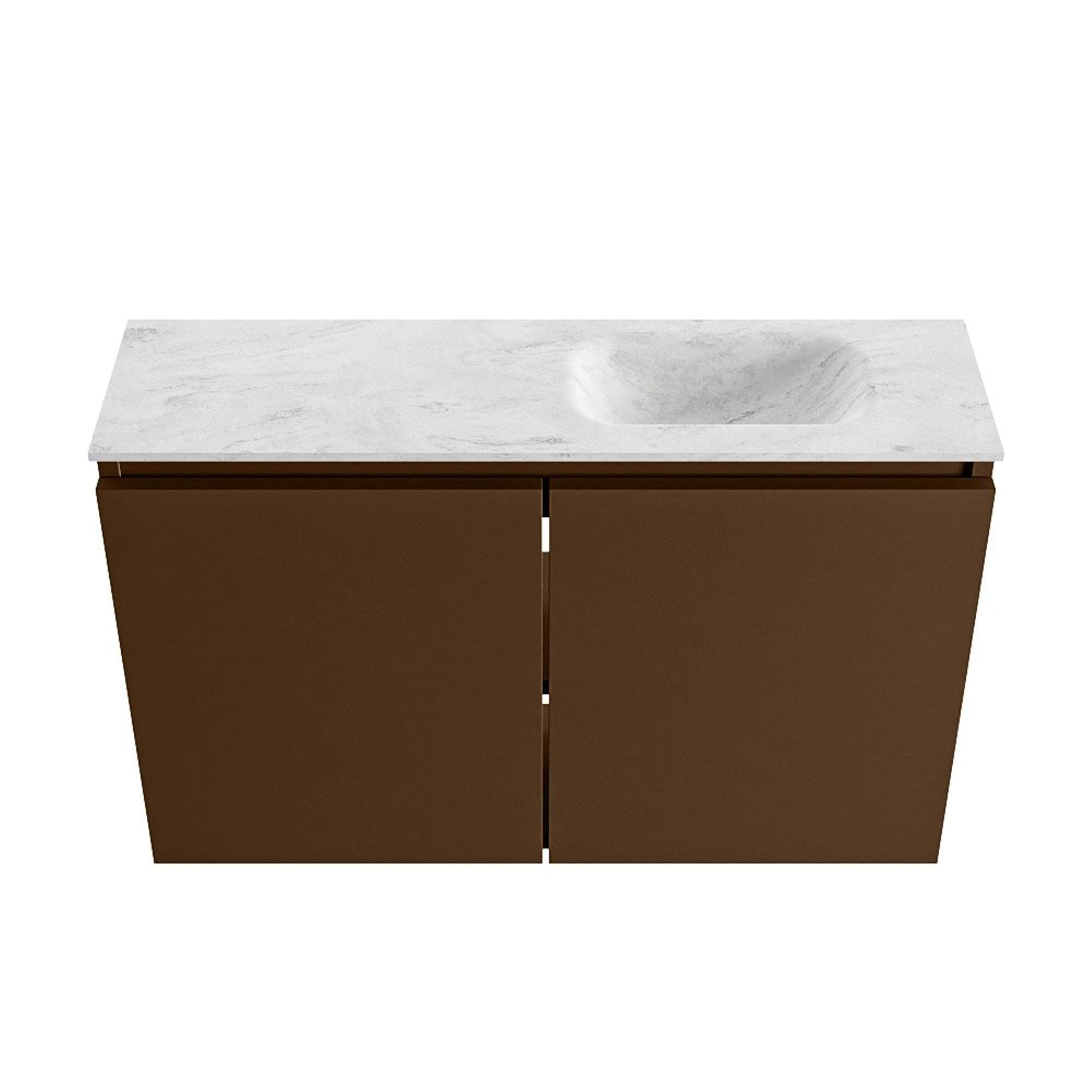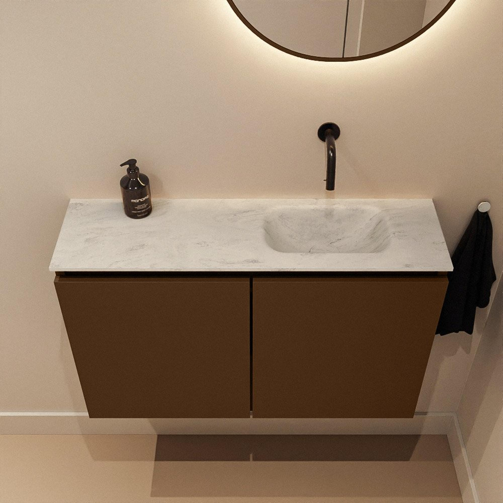 MONDIAZ TURE-DLUX Meuble de WC 80 cm Rust. EDEN lavabo Opalo position droite. Sans trou de robinet.
