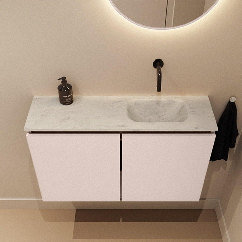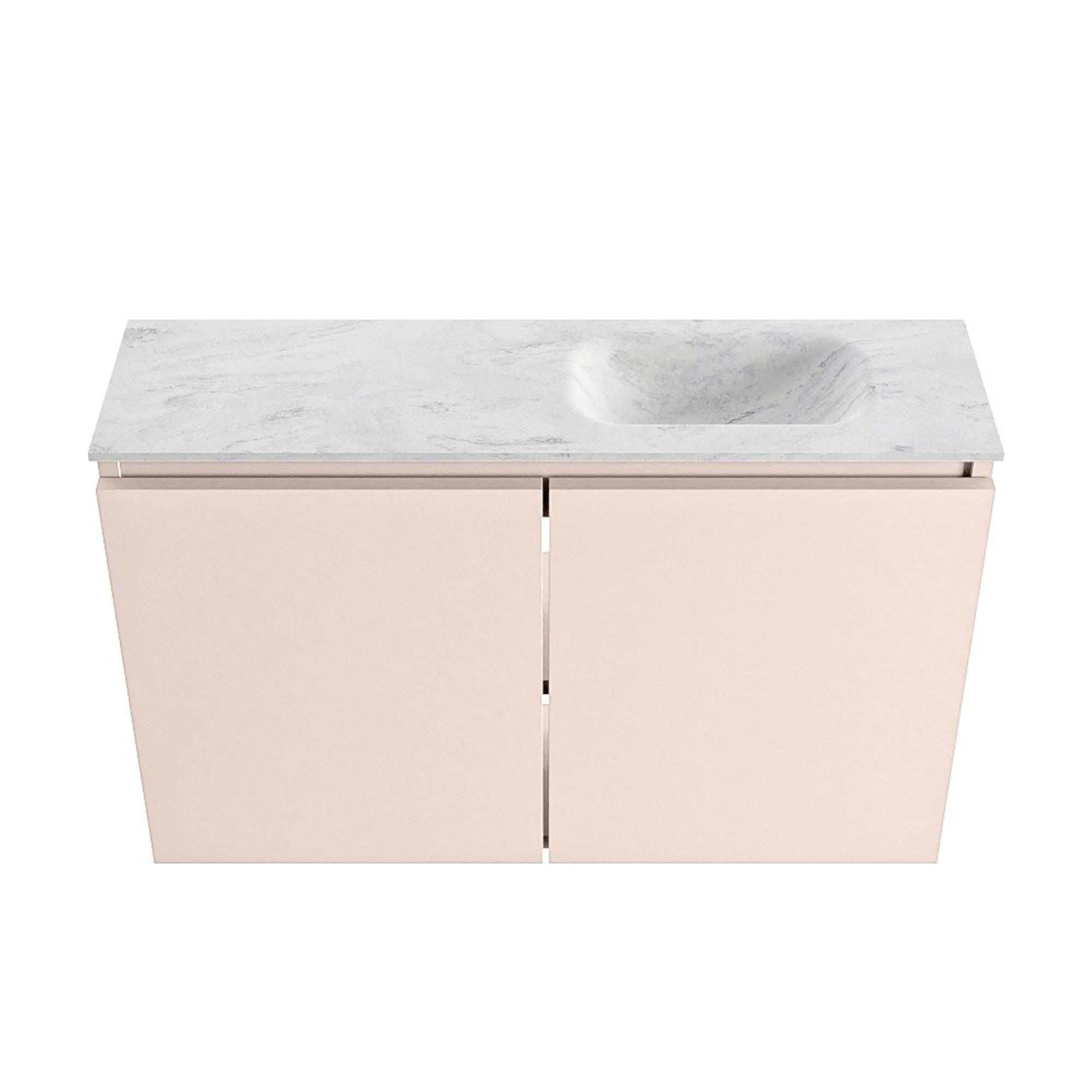 MONDIAZ TURE-DLUX Meuble de toilettes 80 cm Rosee. EDEN lavabo Opalo position droite. Sans trou de robinet.