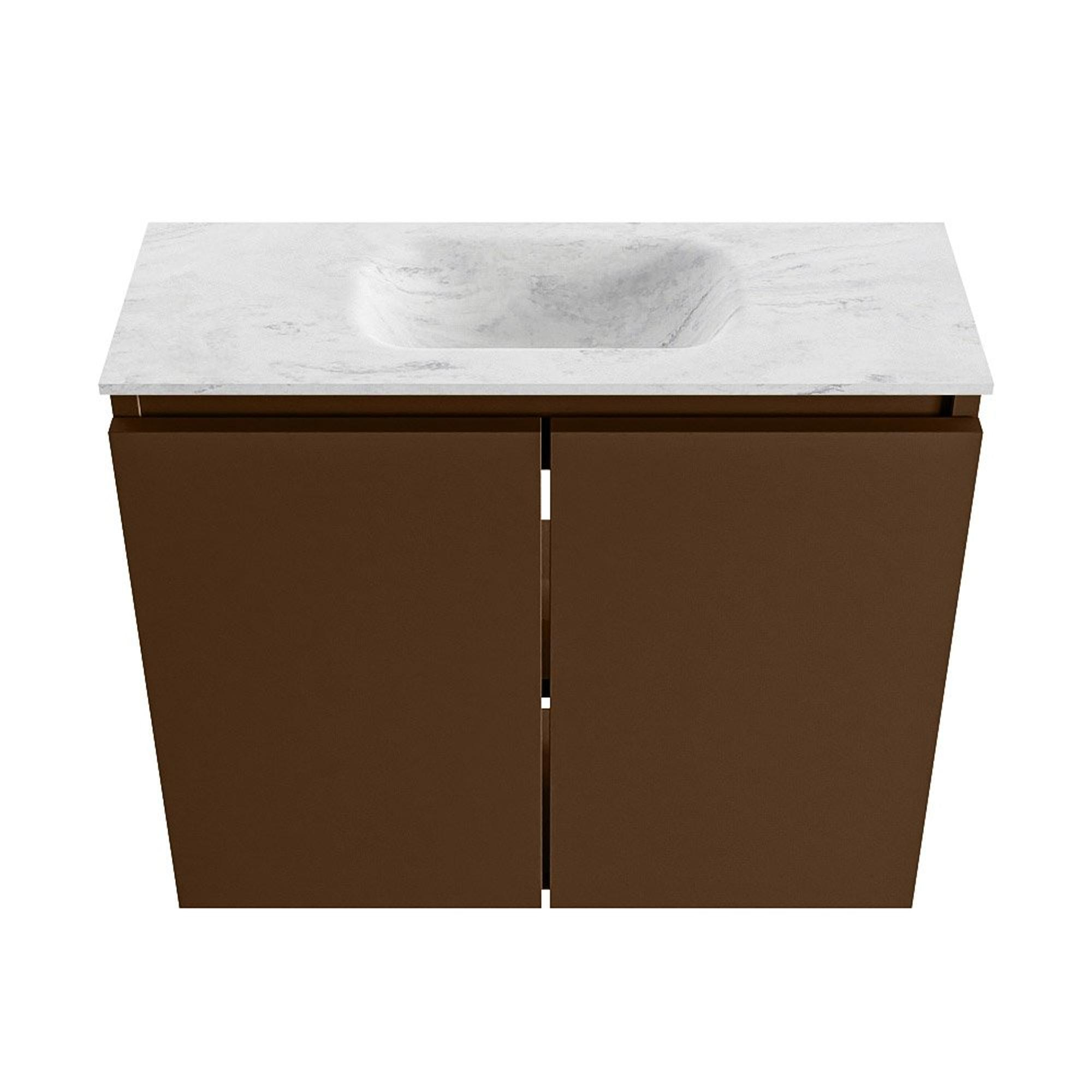 MONDIAZ TURE-DLUX Meuble de toilettes 60 cm Rust. EDEN lavabo Opalo position milieu. Avec 1 trou de robinet.