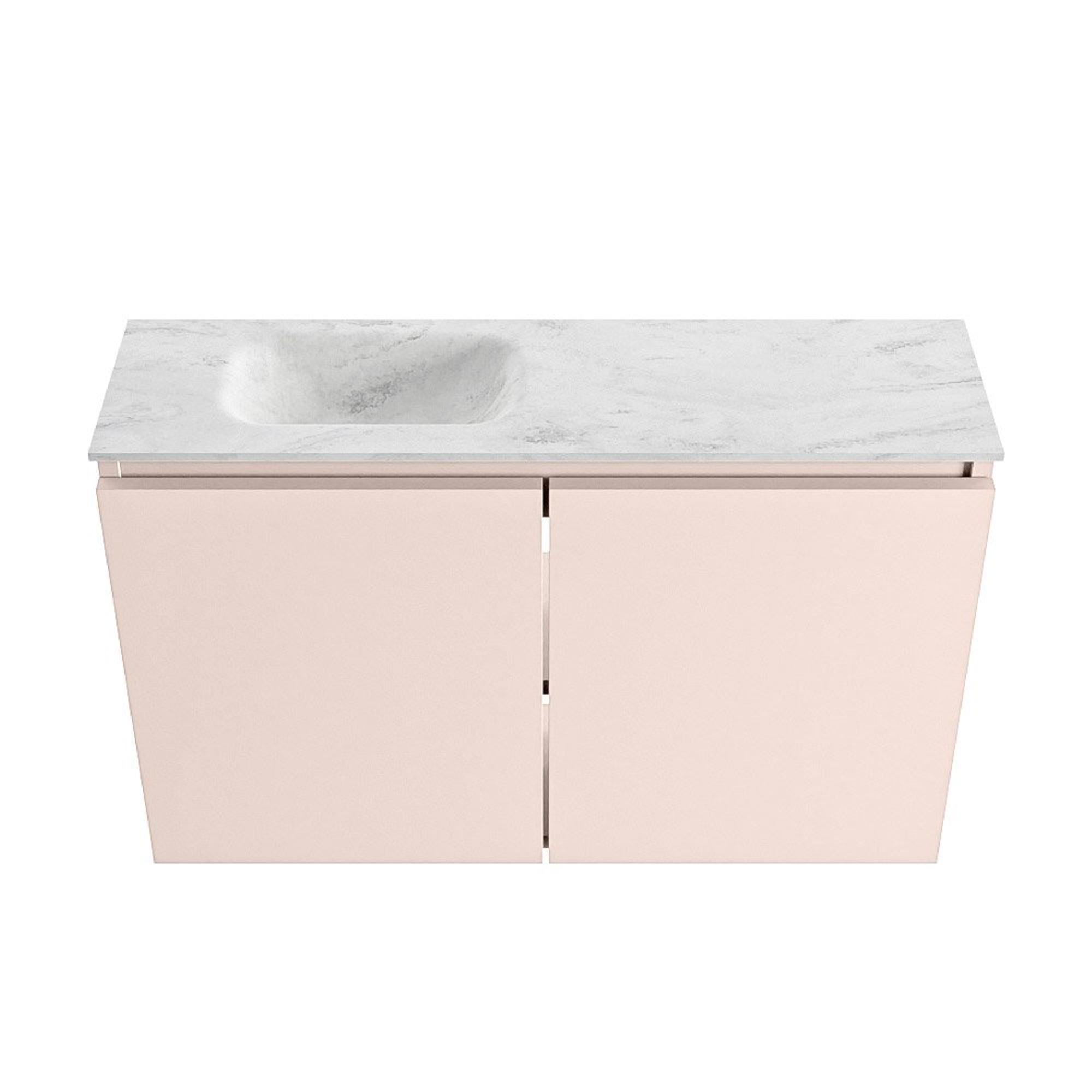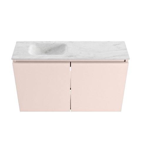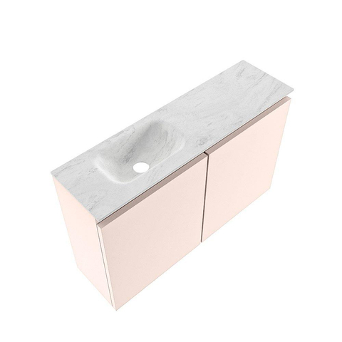 MONDIAZ TURE-DLUX Meuble WC 80cm Rosee. Lavabo EDEN Opalo position gauche. Sans trou de robinet.