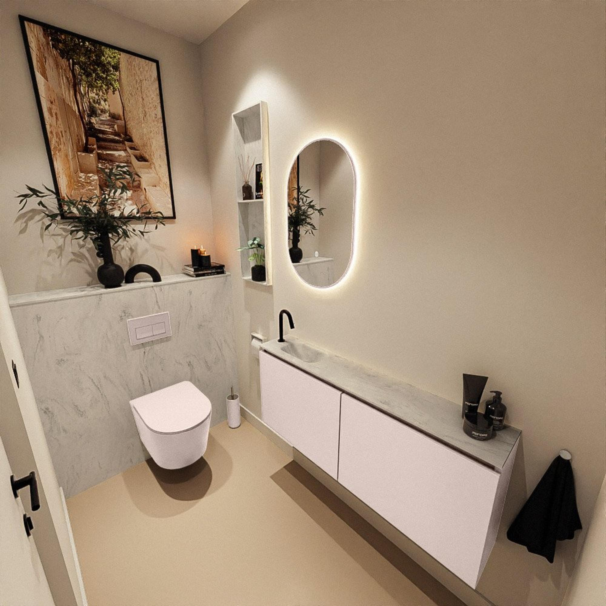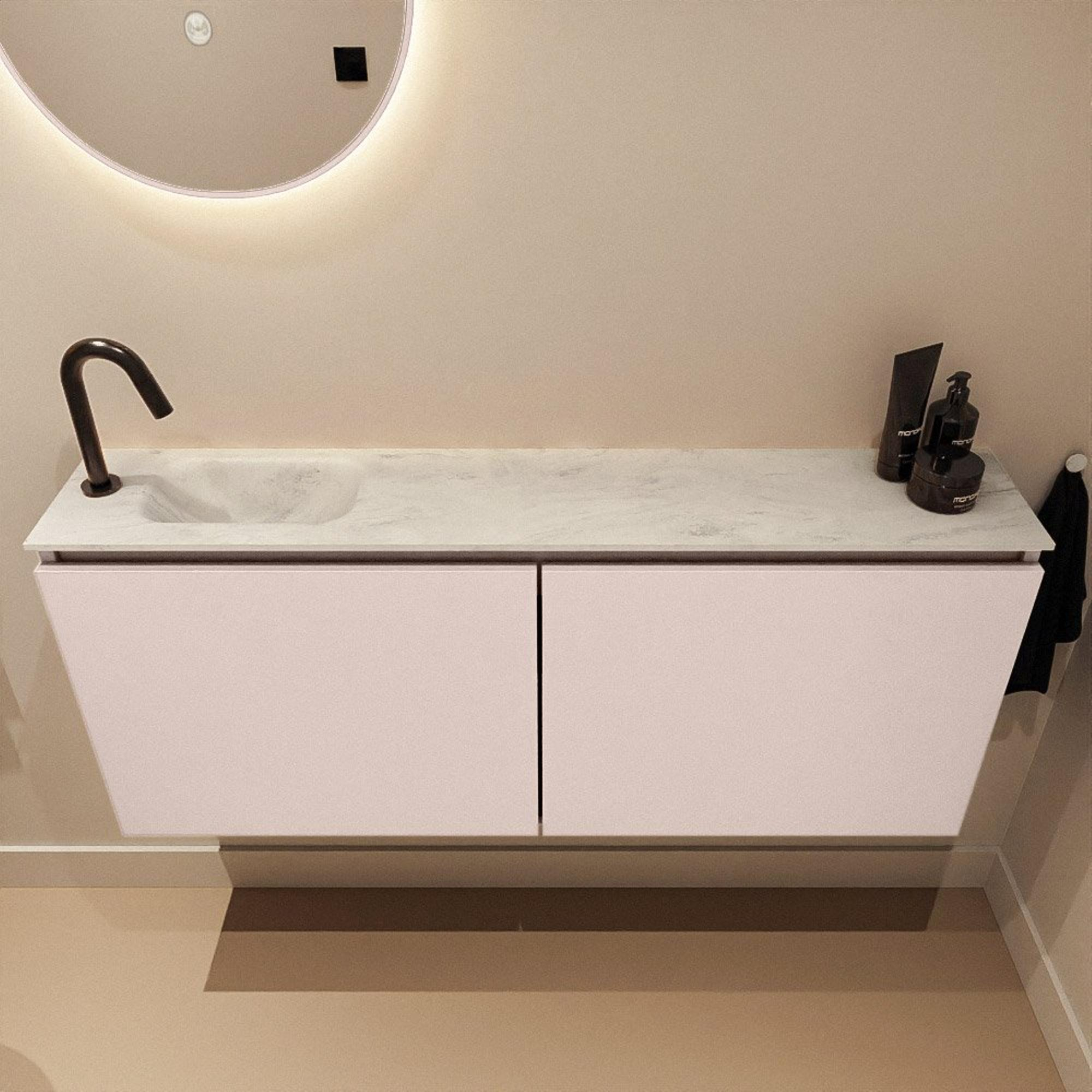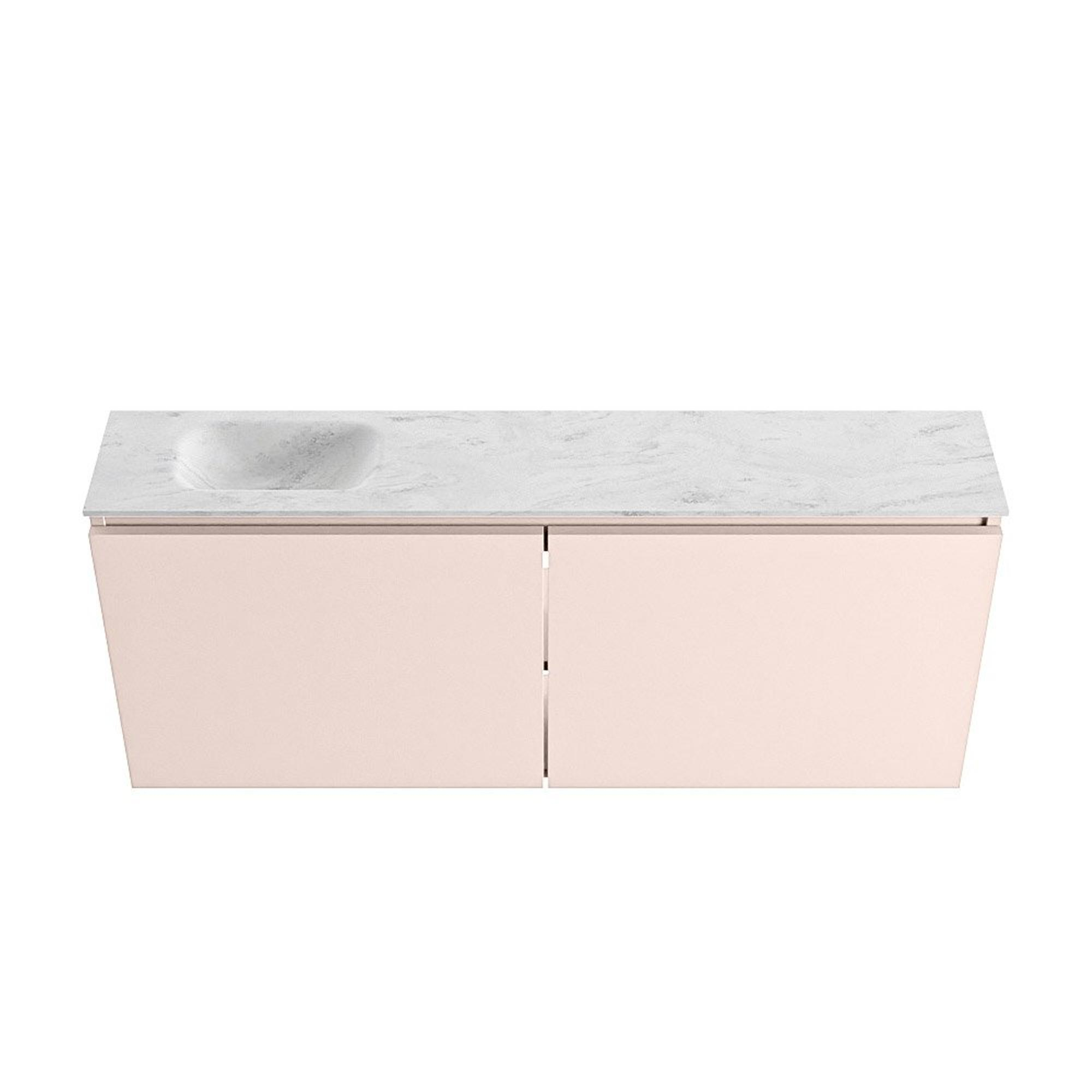 MONDIAZ TURE-DLUX Meuble WC 120cm Rosee. Lavabo EDEN Opalo position à gauche. Avec 1 trou de robinet.