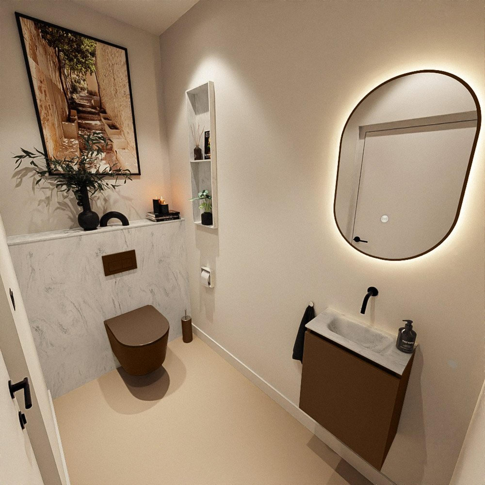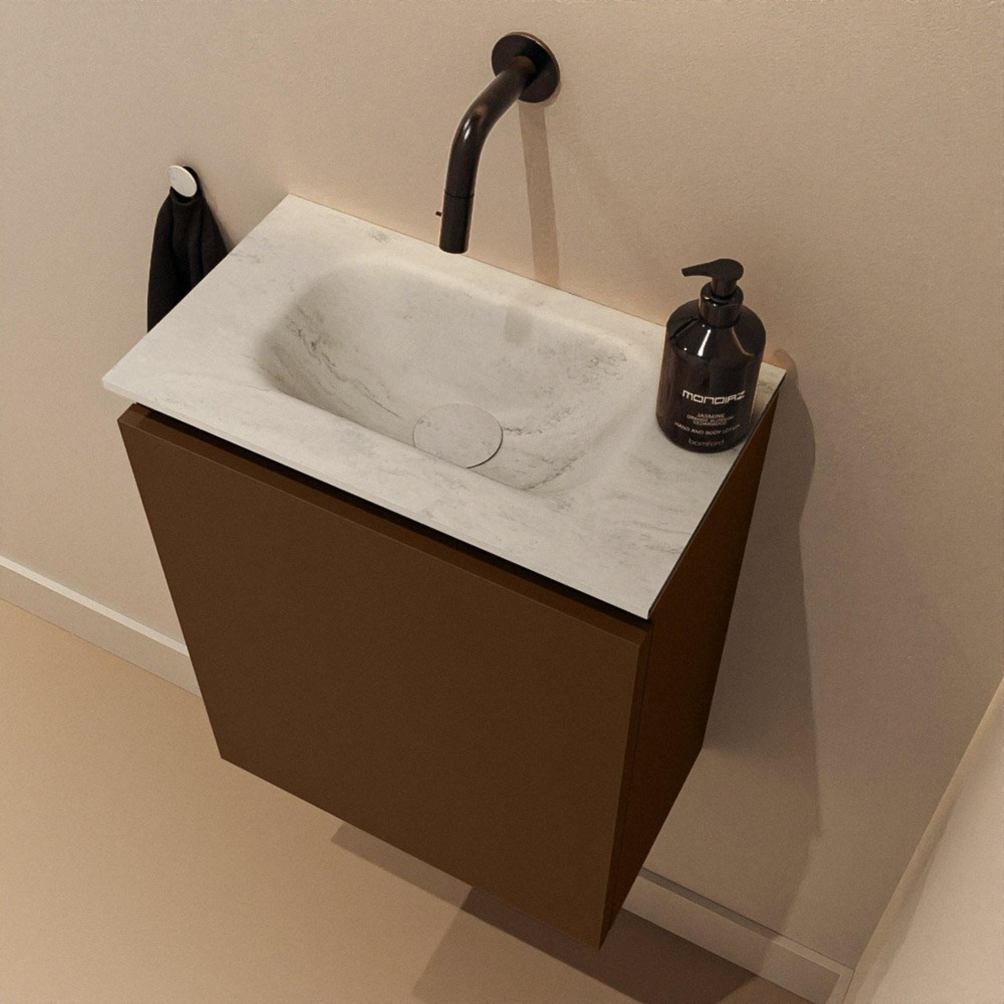 MONDIAZ TURE-DLUX meuble WC 40 cm Rust. Lavabo EDEN Opalo position milieu. Sans trou de robinet.
