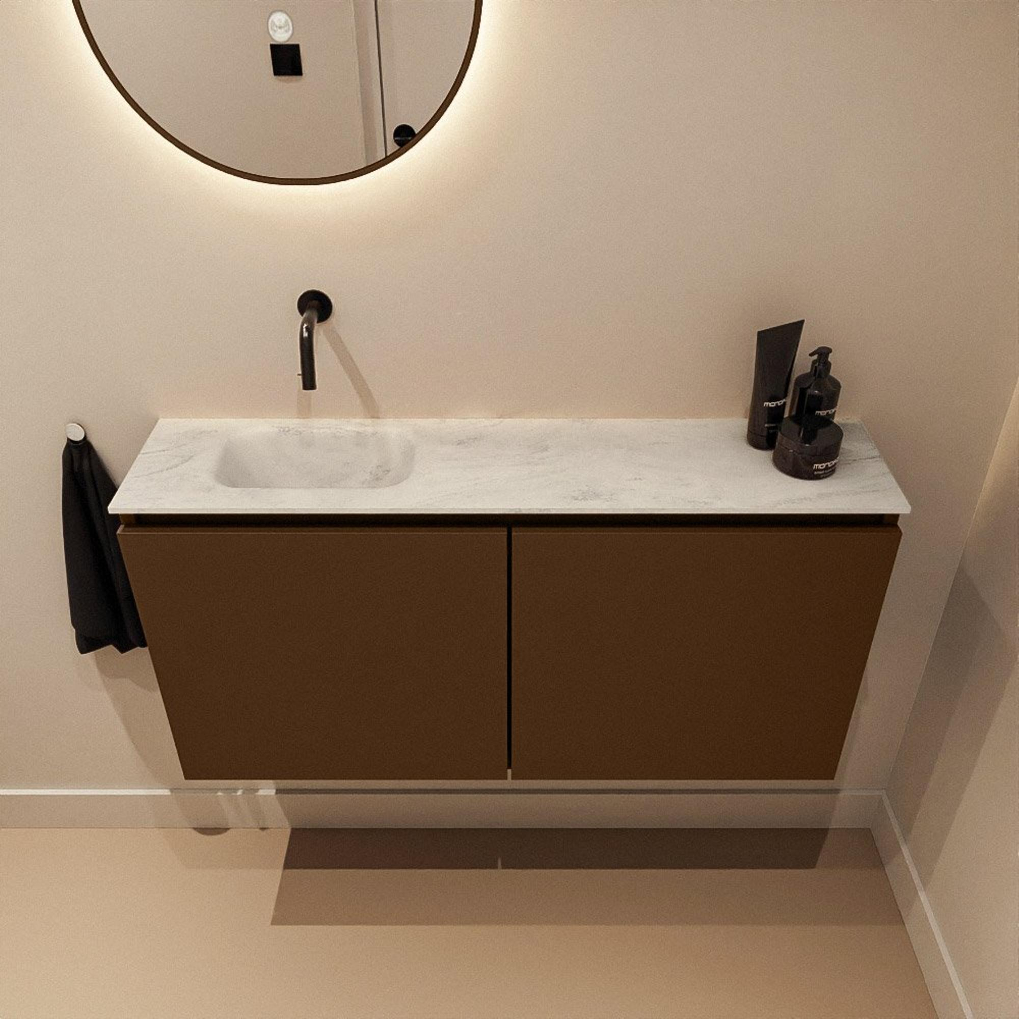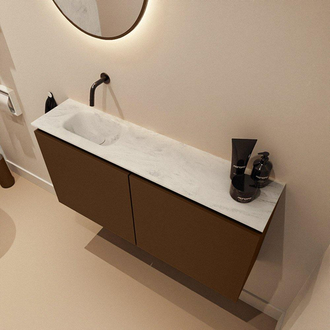MONDIAZ TURE-DLUX Meuble WC 100 cm Rust. EDEN lavabo Opalo position gauche. Sans trou de robinet.