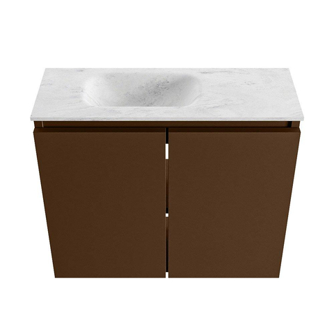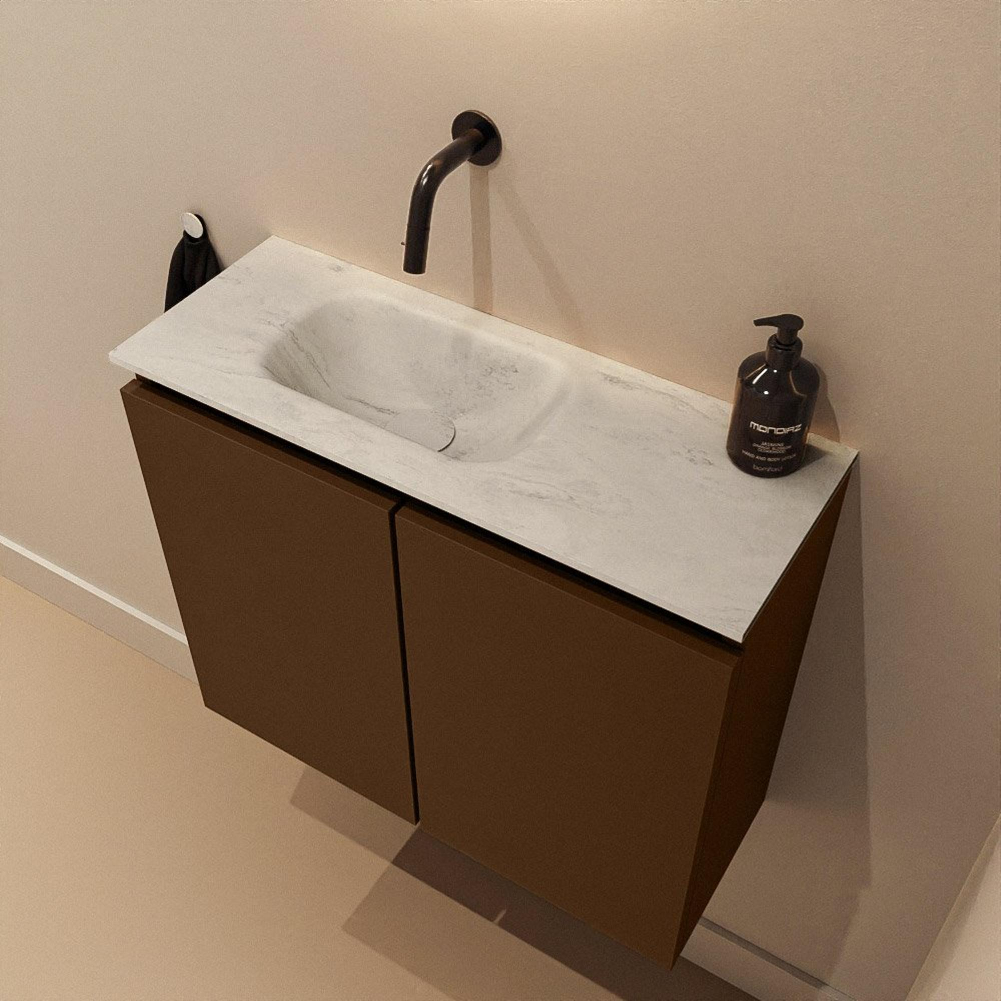 MONDIAZ TURE-DLUX Meuble WC 60 cm Rust. EDEN lavabo Opalo position gauche. Sans trou de robinet.