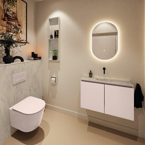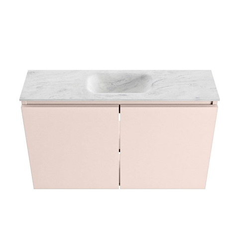 MONDIAZ TURE-DLUX Meuble WC 80 cm Rosee. EDEN lavabo Opalo position milieu. Sans trou de robinet.