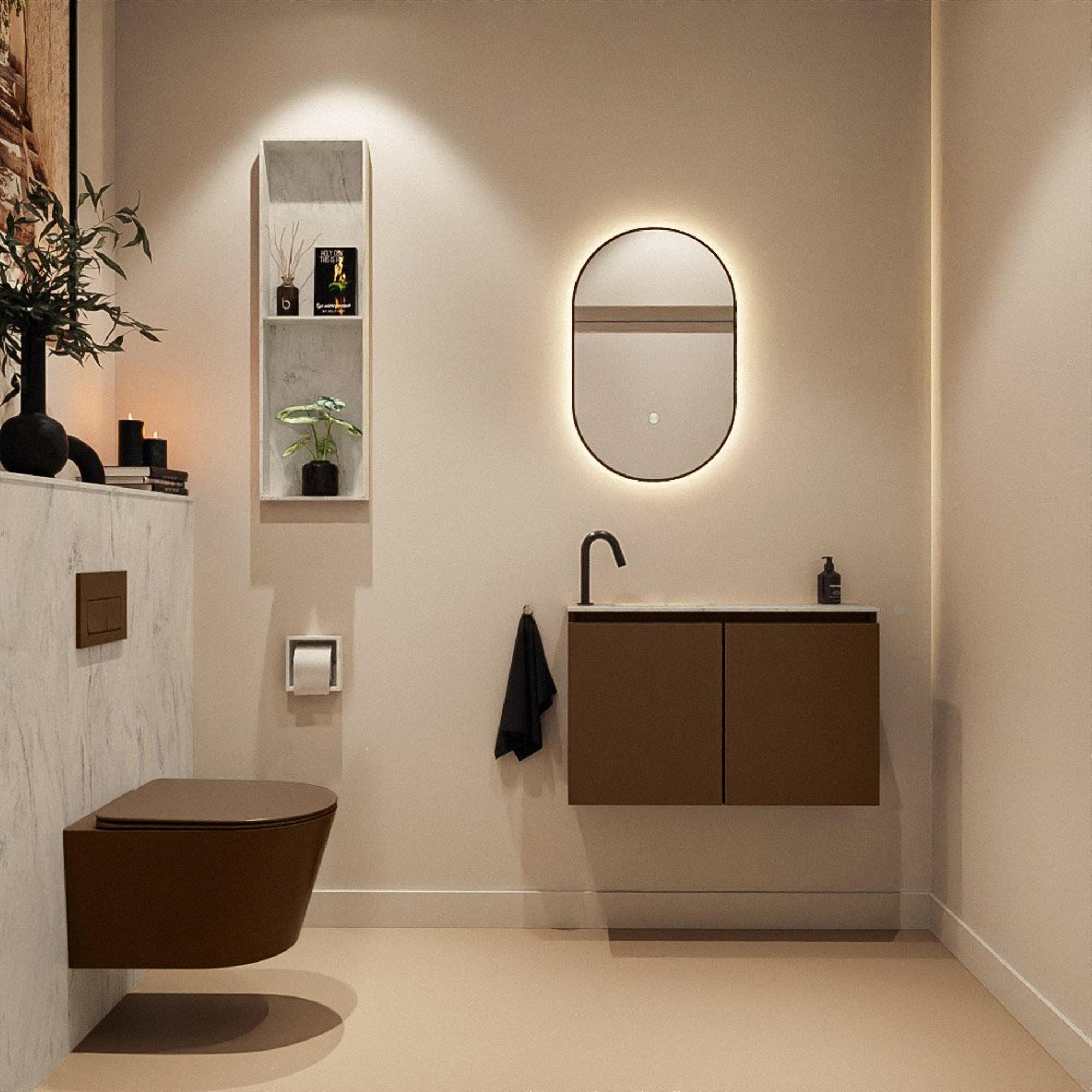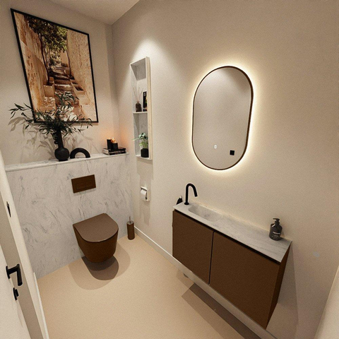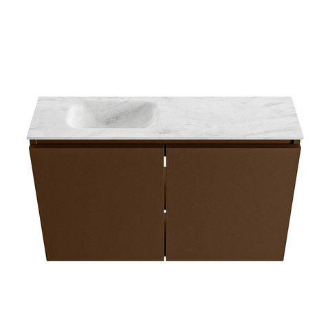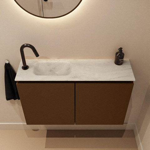 MONDIAZ TURE-DLUX Meuble WC 80 cm Rust. EDEN lavabo Opalo position gauche. Avec 1 trou de robinet.