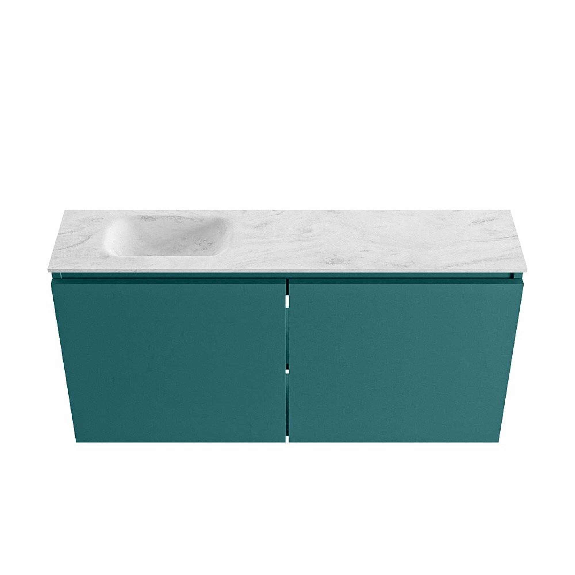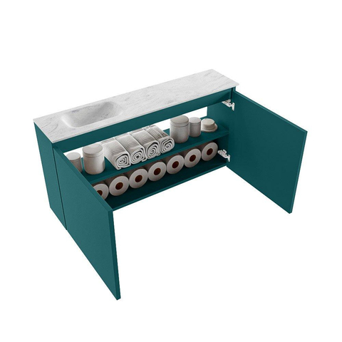 Avec une largeur de 100 cm et une profondeur de seulement 23 cm, ce meuble est conçu pour les espaces où chaque centimètre compte. La faible profondeur vous permet de vous déplacer librement, sans que le meuble ne gêne le passage. En même temps, la largeur généreuse offre suffisamment de confort pour se laver les mains et crée une ligne horizontale luxueuse le long du mur. Comme la vasque est placée à gauche, vous pouvez positionner intelligemment le meuble par rapport à la porte et aux toilettes, afin que l'aménagement paraisse logique et confortable. Surtout dans des toilettes invités ou une petite salle de bains, cela donne un effet spacieux, ce qui fait paraître la pièce plus grande et plus apaisante.