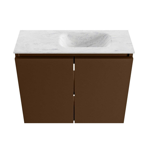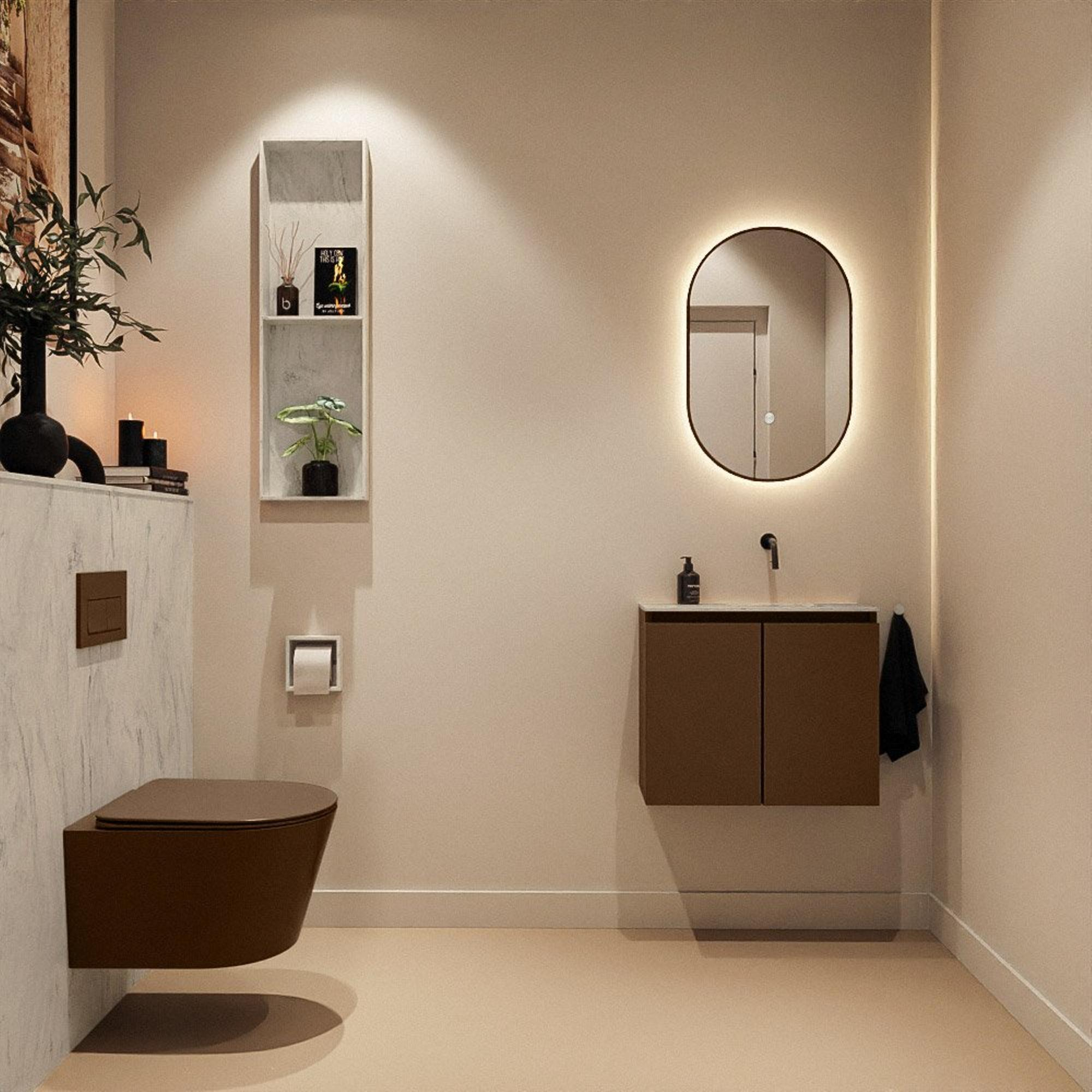 MONDIAZ TURE-DLUX Meuble de toilettes 60cm Rust. EDEN lavabo Opalo position droite. Sans trou de robinet.