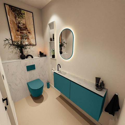MONDIAZ TURE-DLUX meuble WC 120 cm Smag. EDEN vasque Opalo position gauche. Avec 1 trou de robinet.