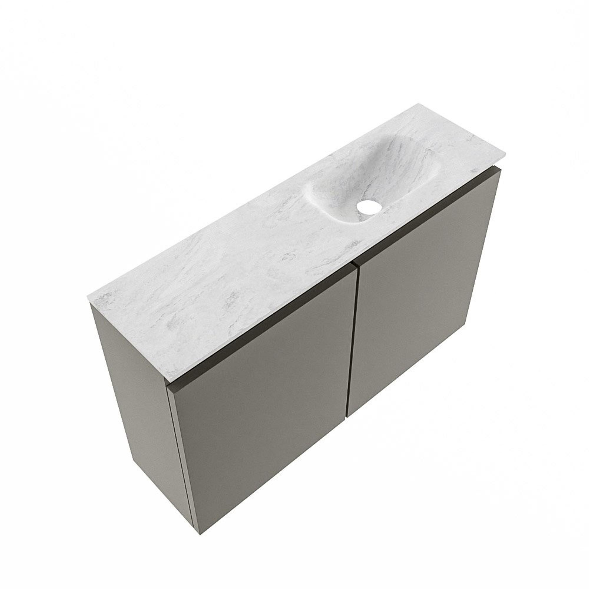 MONDIAZ TURE-DLUX Meuble WC 80 cm Smoke. Lavabo EDEN Opalo position droite. Sans trou de robinet.