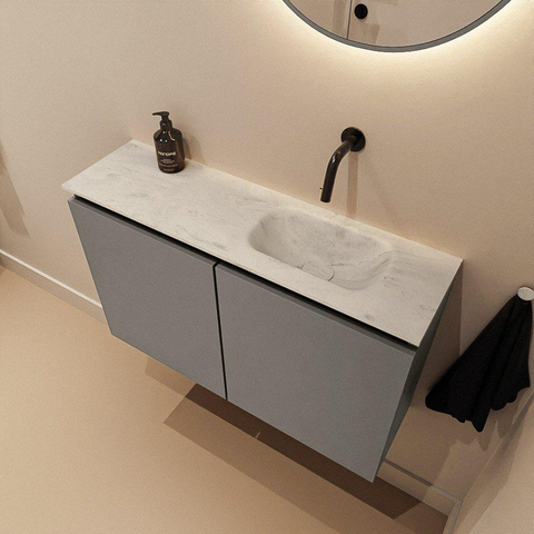 Le meuble bas est fabriqué en MDF, un matériau qui fait ses preuves depuis des années dans les salles de bains grâce à sa finition soignée et sa stabilité dimensionnelle. Le plan et le lavabo intégré en Eden Opalo Solid Surface sont connus pour leur aspect lisse et sans joints et leur caractère facile d’entretien. Les taches et les légers dépôts se nettoient facilement, de sorte que votre lavabo retrouve rapidement son aspect neuf. La vasque est positionnée sur le côté droit, idéal si vous souhaitez, par exemple, conserver de l’espace à gauche pour des accessoires ou si l’agencement de vos conduites et la position des toilettes l’exigent. Comme le lavabo est réalisé sans trou de robinet, vous avez en plus toute liberté de choisir, selon vos envies, un mitigeur posé ainsi qu’une bonde encastrée ou posée assortie.