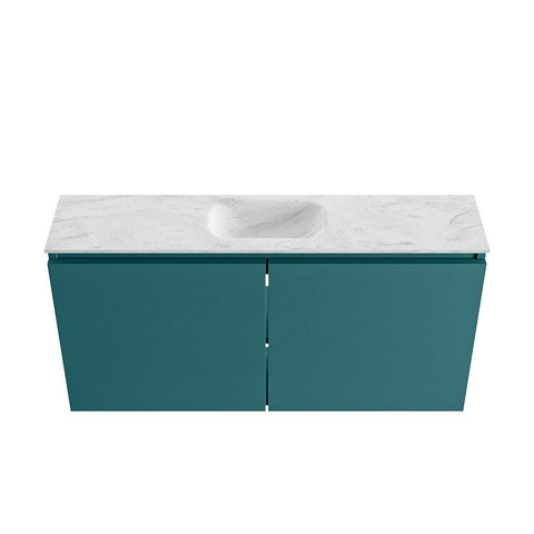 - Meuble bas mat dans la couleur Smag, une teinte de vert moderne qui se marie bien avec différents styles de carreaux et de couleurs.