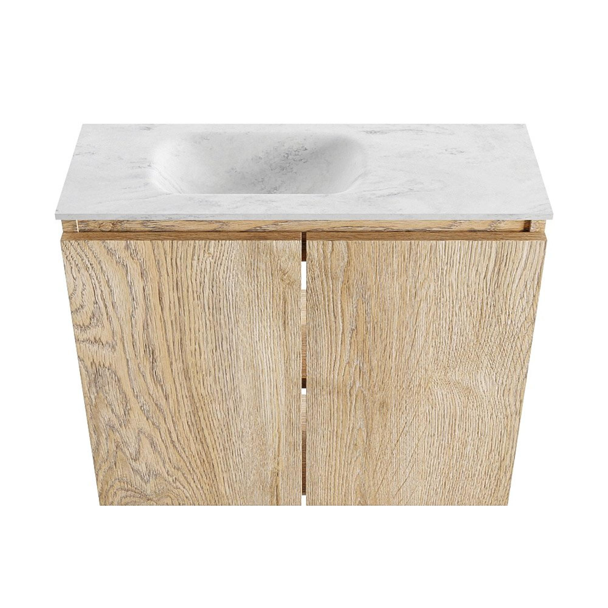MONDIAZ TURE-DLUX Meuble de toilettes 60 cm Washed Oak. Lavabo EDEN Opalo position gauche. Sans trou de robinet.