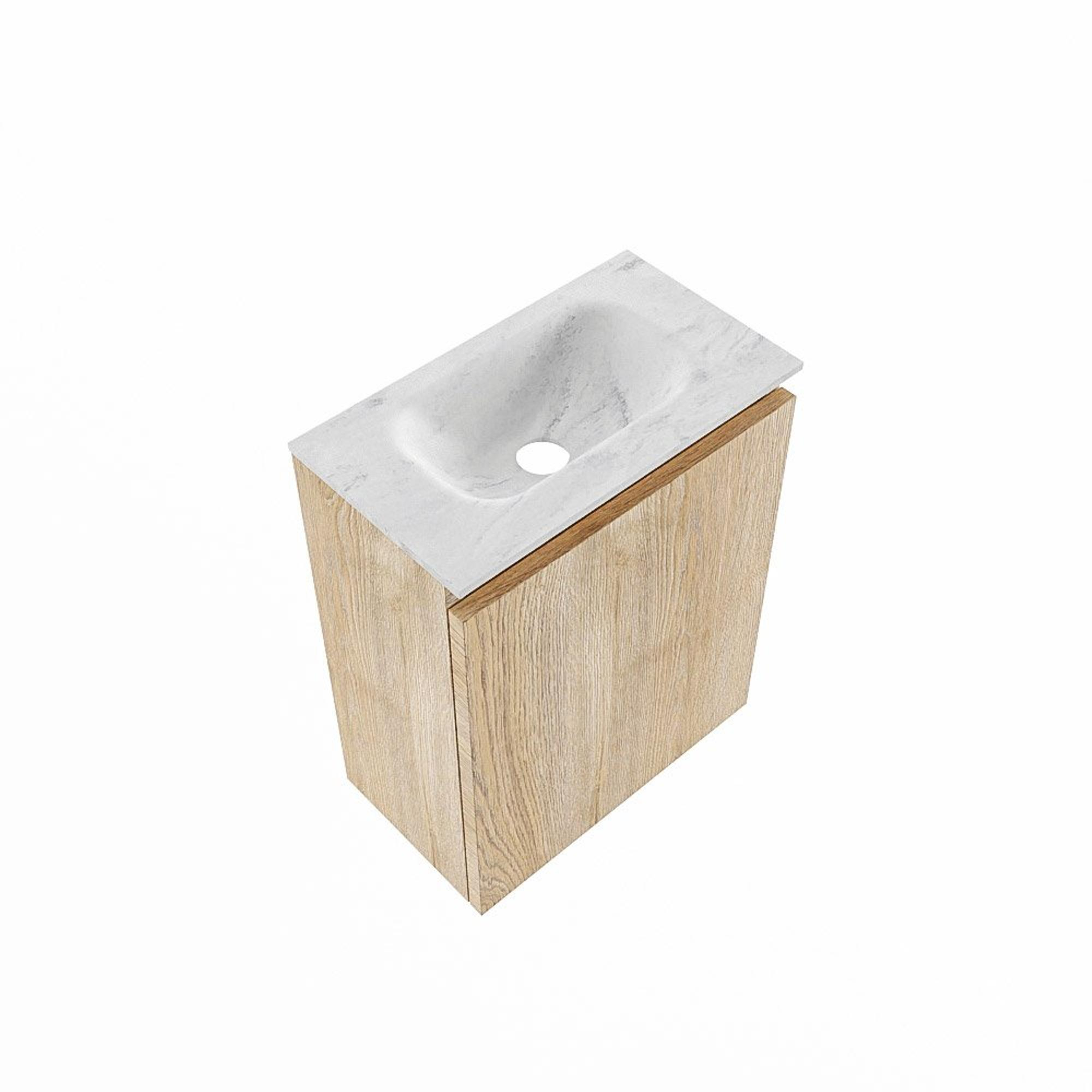 MONDIAZ TURE-DLUX Meuble de toilette 40 cm Washed Oak. Lavabo EDEN Opalo position milieu. Sans trou de robinet.